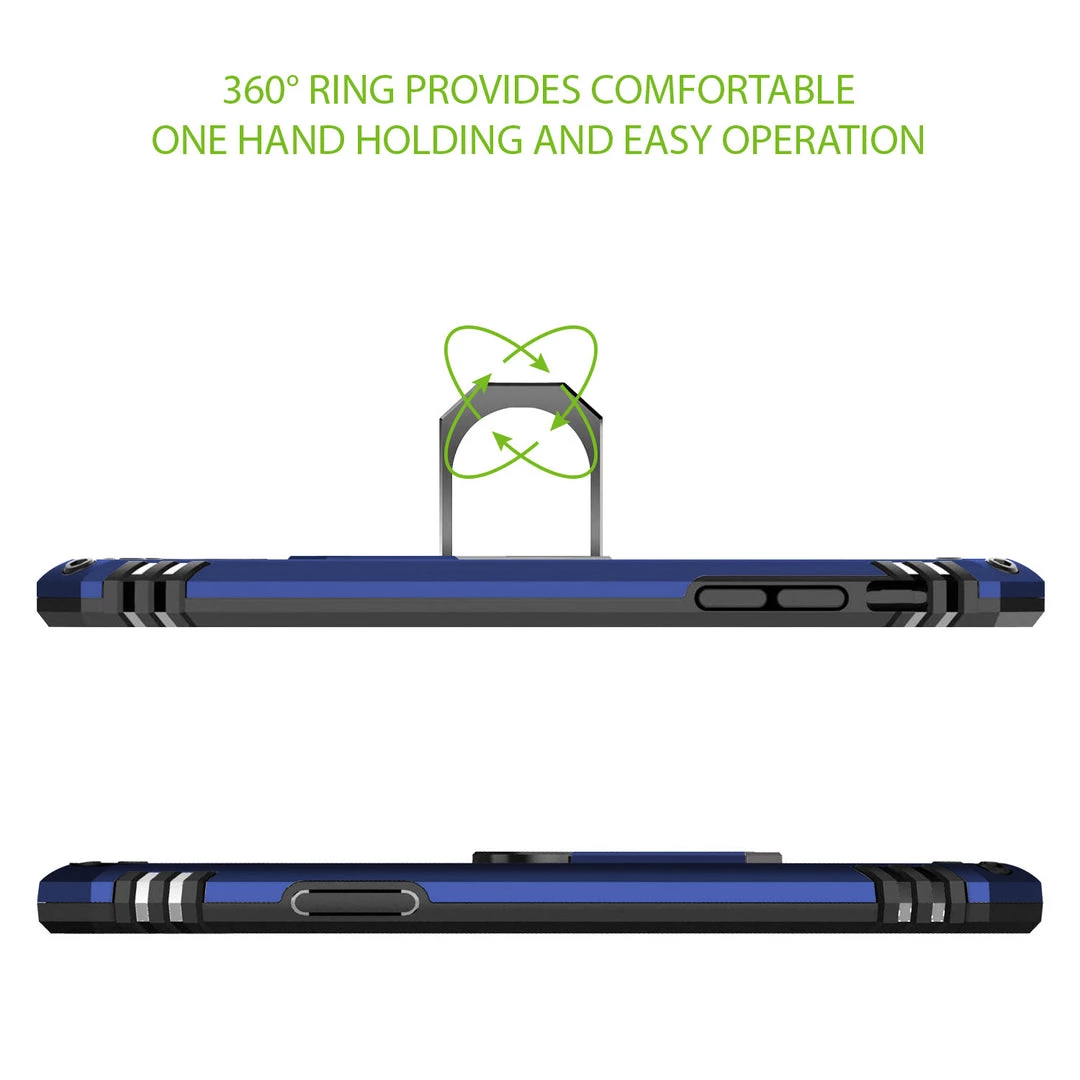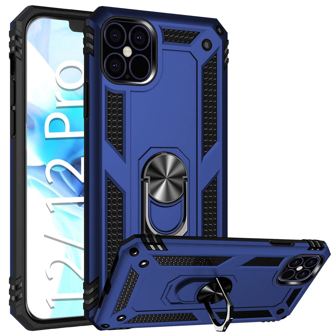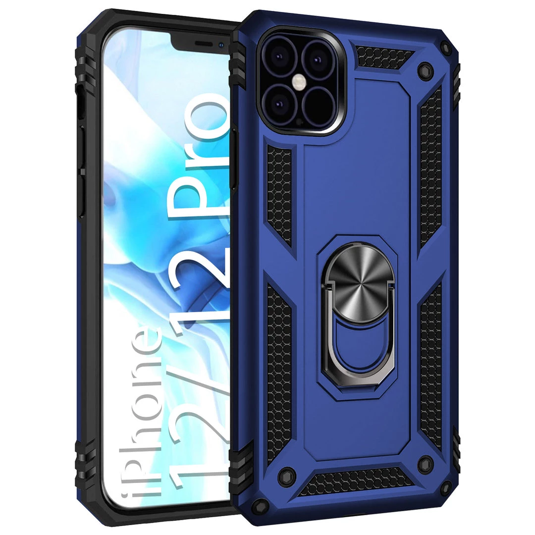 Combining protection with functionality, this Shockproof Combo Case allows you to carry your device with ease while providing maximum all-around protection. This case was made exclusively for the Apple iPhone 12 Pro and contains a built-in media kickstand that allows viewing in landscape (horizontal) or portrait (vertical) orientation. Featuring an extra-strong magnet, simply hover the phone onto the holder and it will quickly snap on; your device can be positioned at any desired angle. The metal ring is used as a finger support cradle while using your device to hold your phone securely with a safe, tight grip and prevent costly accidental drops. The shockproof combo case comes in black color and contains TPU, rubberized soft coating, which aids as an extra step of precaution against accidental cosmetic damage. The slim profile and the multi-functionality of this product merge style, versatility, and supreme protection.