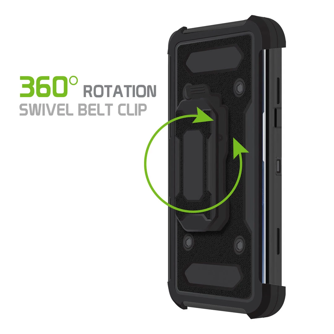 - The heavy-duty holster belt clip provides 360-degree rotation