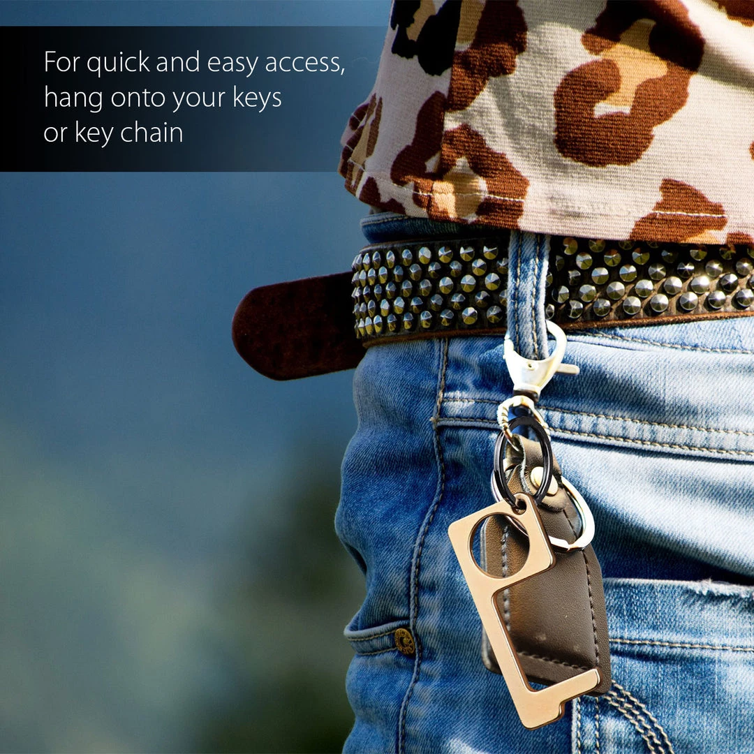 Avoid direct contact with public objects, germs, and bacteria by using the contactless door opener. The contactless Door Opener is extremely convenient when you are out and want to avoid direct contact and spreading of germs. Use the door opener when opening push, pull, or sliding doors, to push the buttons on the elevator or ATM and open and close drawers. A Contactless door opener is also useful to avoid touching some public touchscreens such as store self-checkouts and when using ATMs. Small, lightweight but efficient, makes it easy to carry around. Simply attached to your keys or keychain for quick access.
