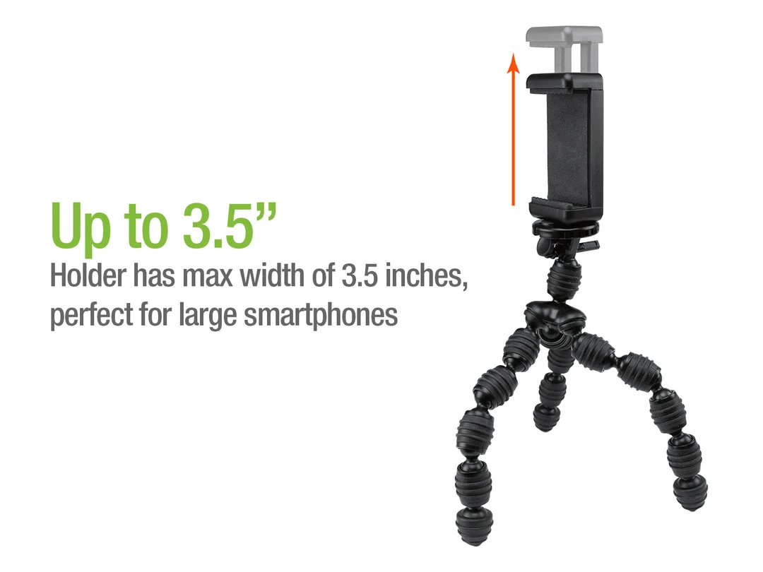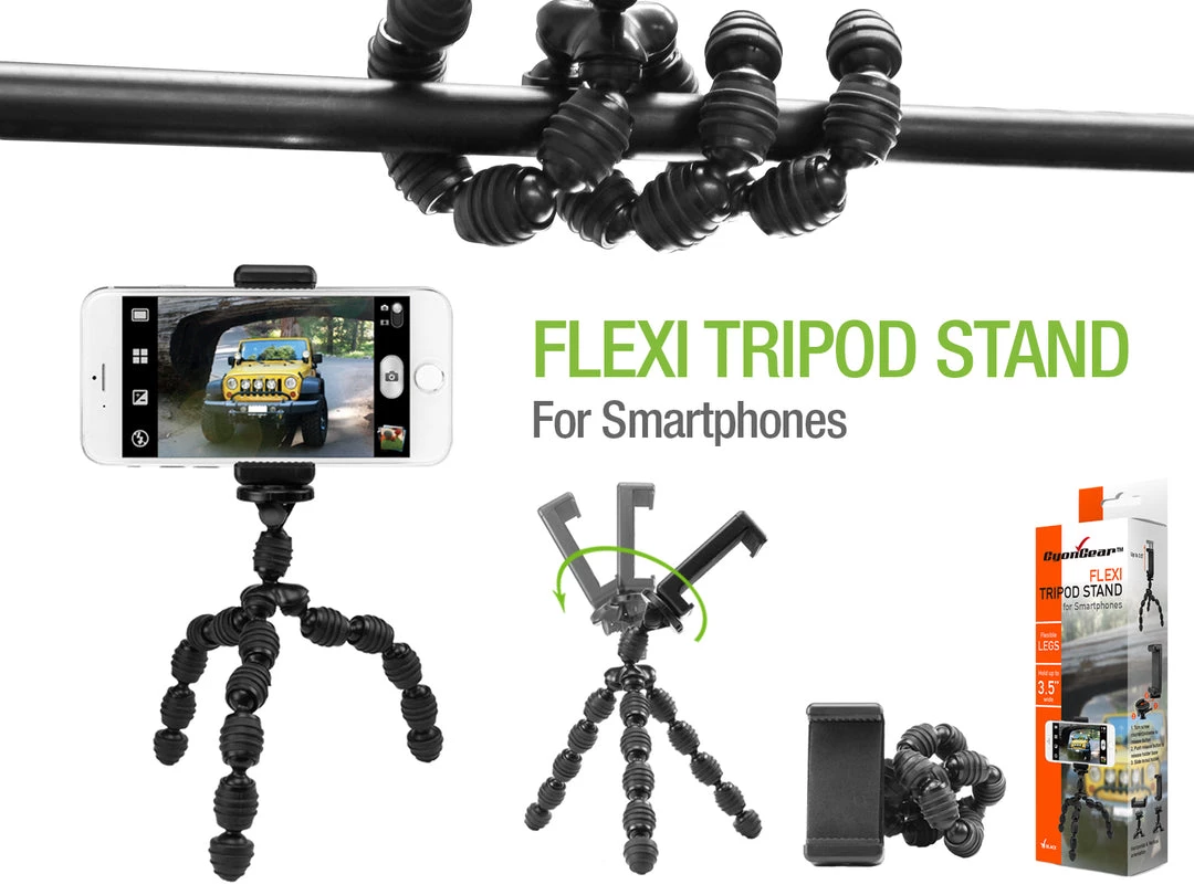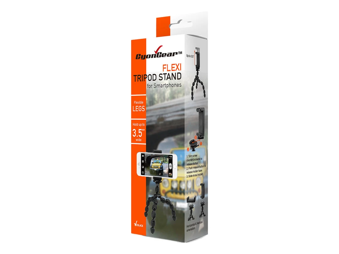 Enhance your photo taking skills by positioning your mobile device in a variety of positions with the CyonGear Flexi Tripod Stand for Smartphones. It has flexible legs that are made of a rubberized durable material that can stand or wrap around most surfaces. This Smartphone tripod mount has an extendable phone holder that has a maximum width of 3.5″, ideal for your Note Series or iPhone 6s Plus. Its built-in foam padding allows for better and more secure gripping, and its holder has a quick release for easy access to your device. The CyonGear Flexi Tripod Stand for Smartphones is lightweight and easy to use. It is excellent for taking selfies, group photos, outdoor snapshots, and more.