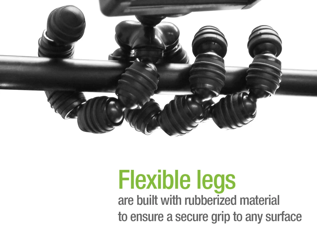 - Flexible legs are built with a rubberized material to ensure a secure grip on any surface