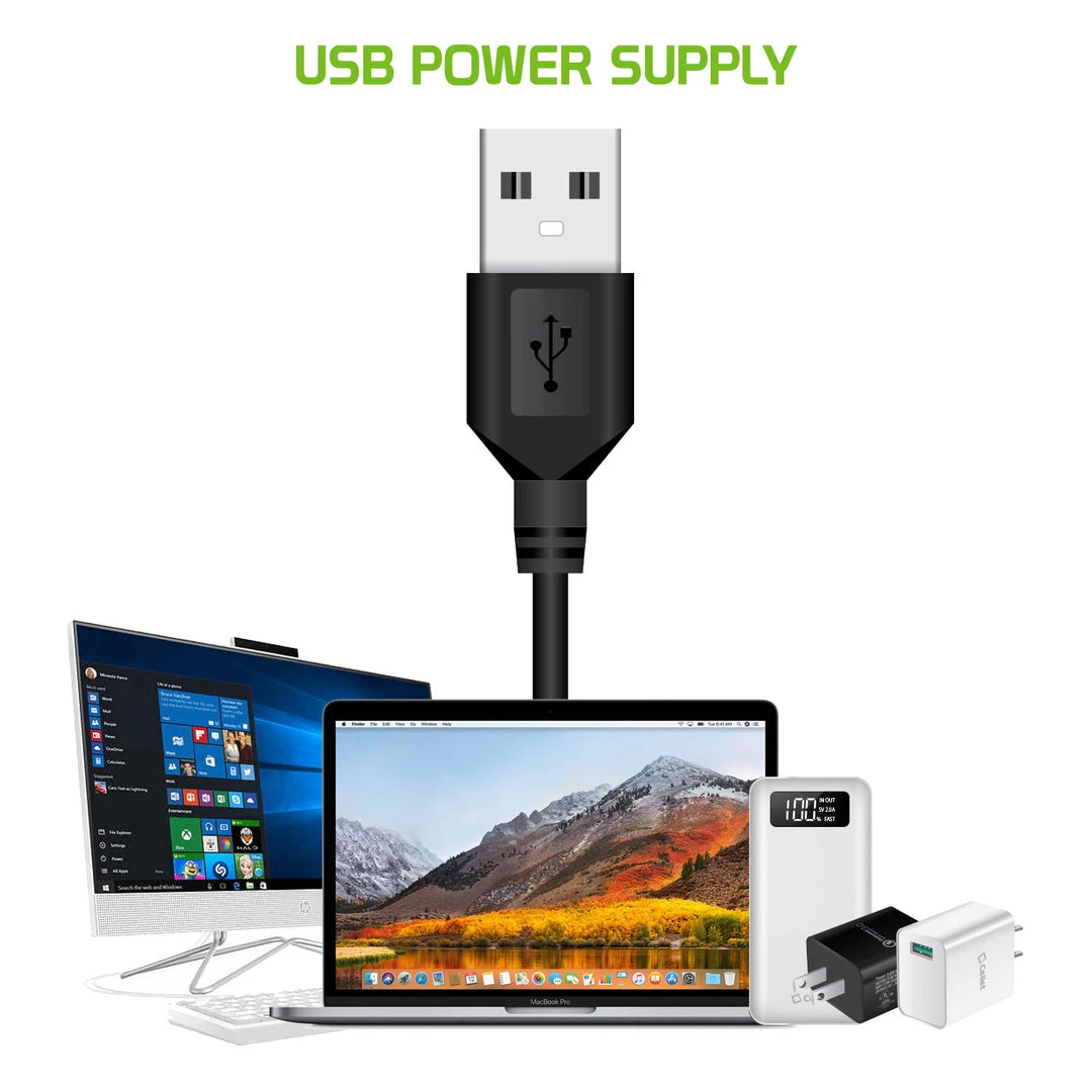 - No batteries needed, USB powered (AC adapter not included)