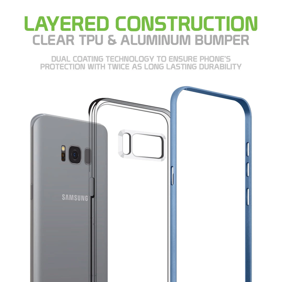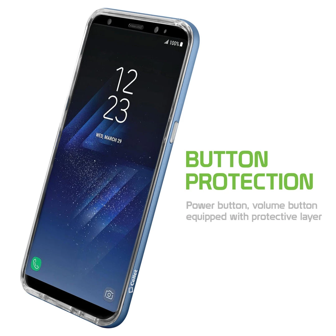 A transparent, dual, drop protective TPU case for Samsung Galaxy S8 contains a shockproof bumper with a convenient slim fit without extra bulk to your device. The duo case contains a frame bumper with precise cutouts which allow access to buttons, controls, bottom speaker, and USB port. The bumper tough frame will hug your phone and protect it against day-to-day inconvenient drops and scratches. Due to the case being transparent you can portray the color of your phone with the added hint of metallic. Your device can have a professional yet stylish look.