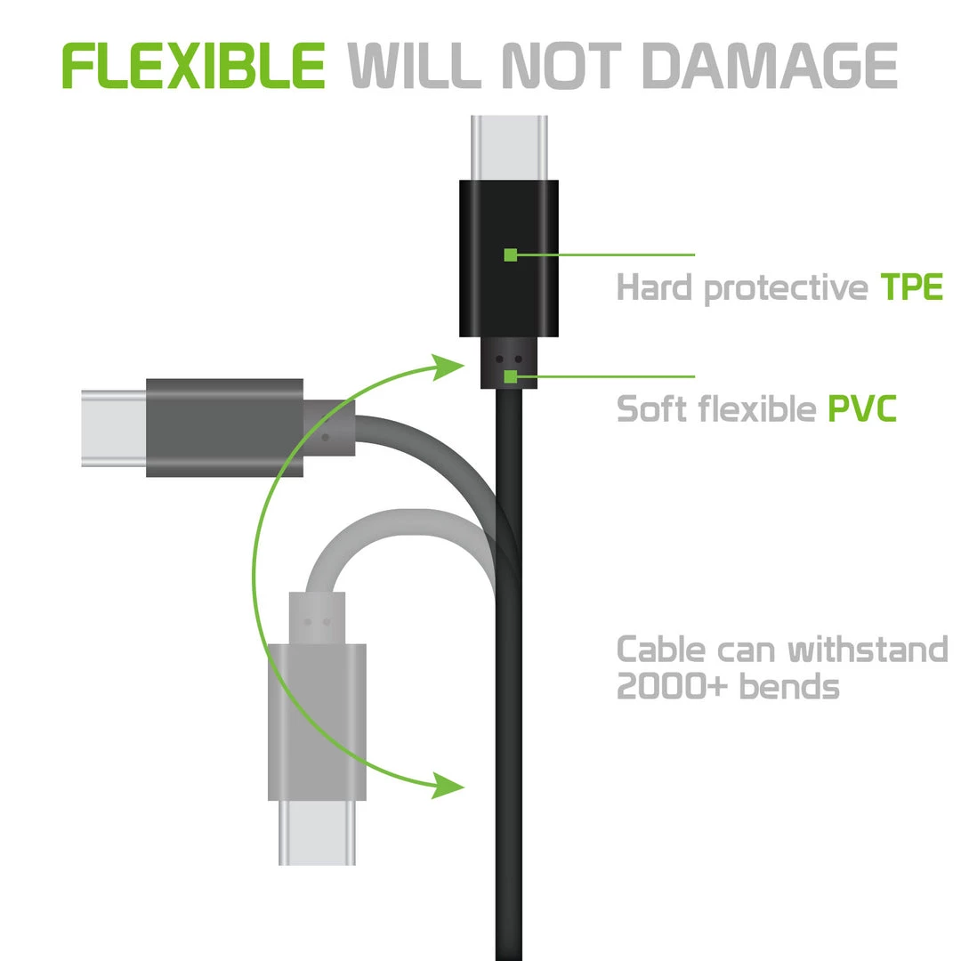 - Cable can withstand 2000+ bends, wear and tear, tangles, and frequent bending from plugging/unplugging.