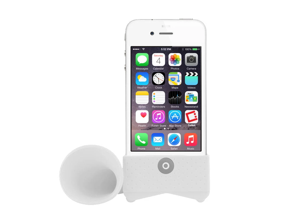 This Black iPhone Speaker Amplifier lets you listen to your music clearly and loud anywhere you go. It is easy to carry with you and fun to use while at the beach, park, or outdoor party. This iPhone sound amplifier comes in two pieces.Â