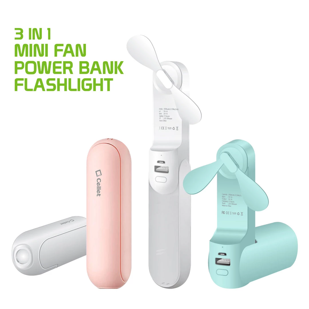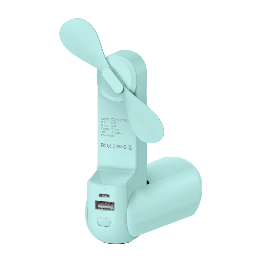 - Small portable fan to keep you cool for hot summer days that give you extra battery for your smartphone or mobile devices. With a flashlight that makes it great to use for camping, power outages, or in the room.