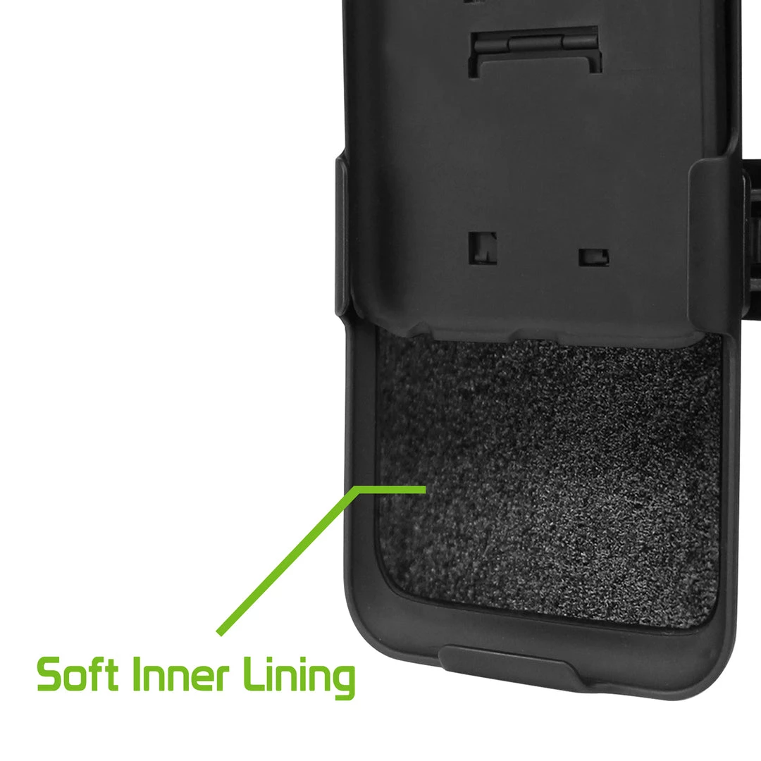 - The heavy-duty holster belt clip provides 180-degree rotation