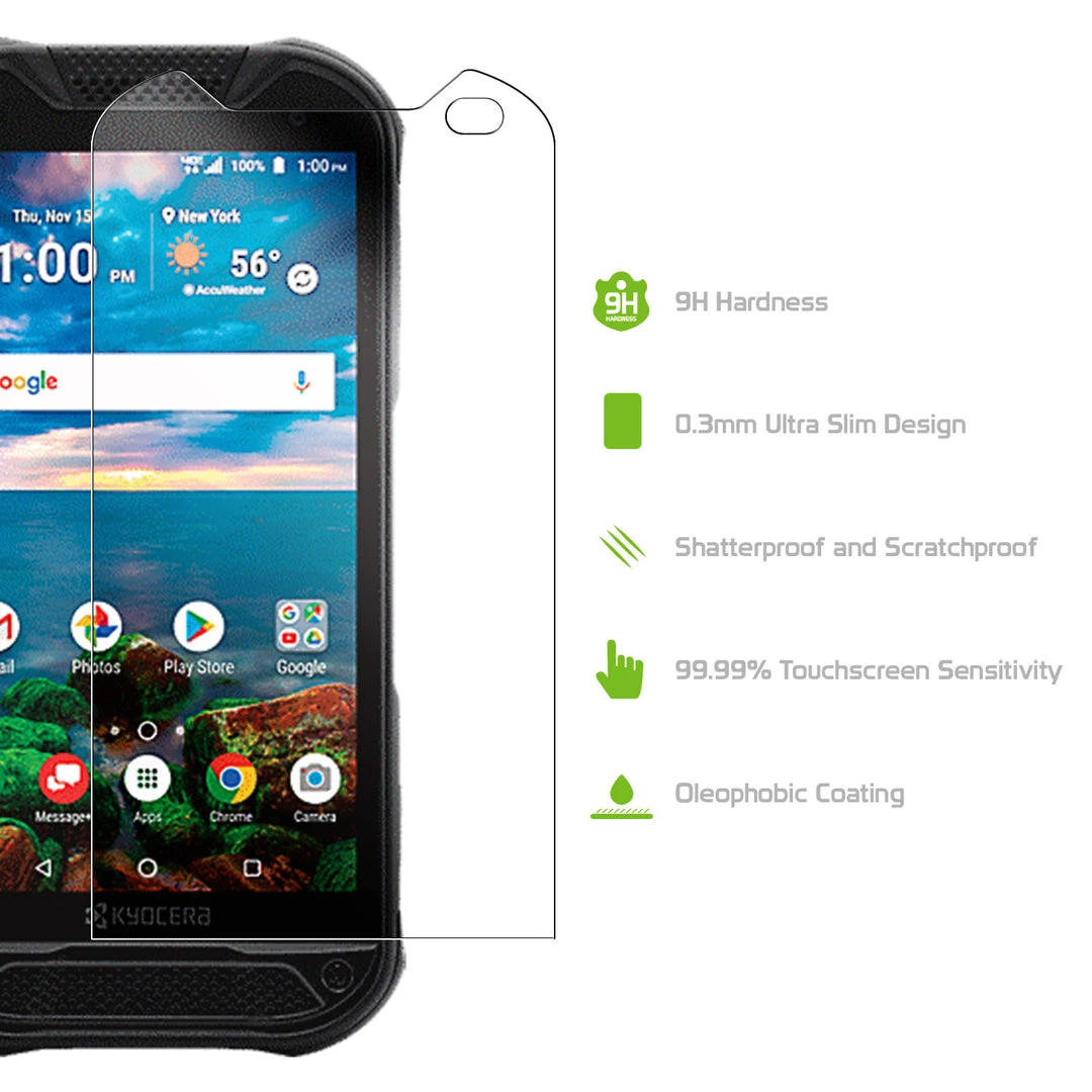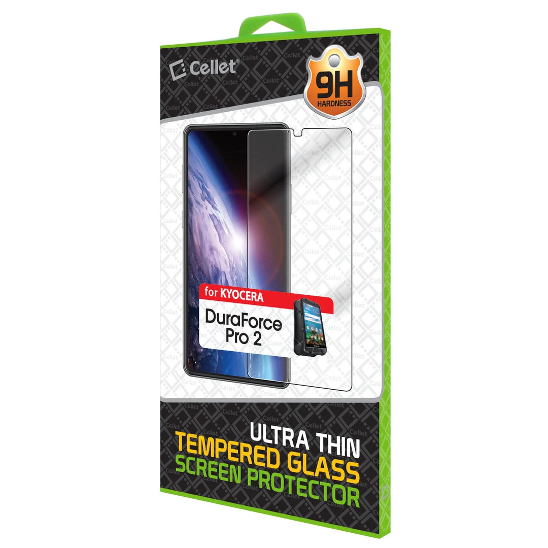 Protect your Kyocera DuraForce Pro 2 screen with the Cellet Premium Tempered Glass Screen Protector. Precisely cut for the Kyocera DuraForce Pro 2, the screen provides the ultimate protection for your screen without sacrificing touchscreen capabilities. Each tempered glass screen protector provides 9H hardness strength with minimal thickness, offering scratch-proof protection without added space and its oleophobic coating gives resistance against smudges and fingerprints. Simple to install, the package includes an alcohol wipe, blue film, microfiber cloth, and sticker directions to assist in the application of the screen.