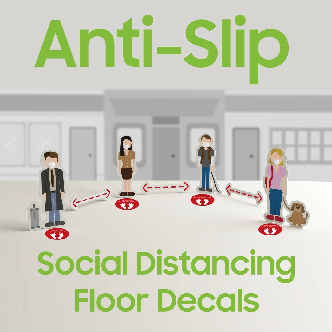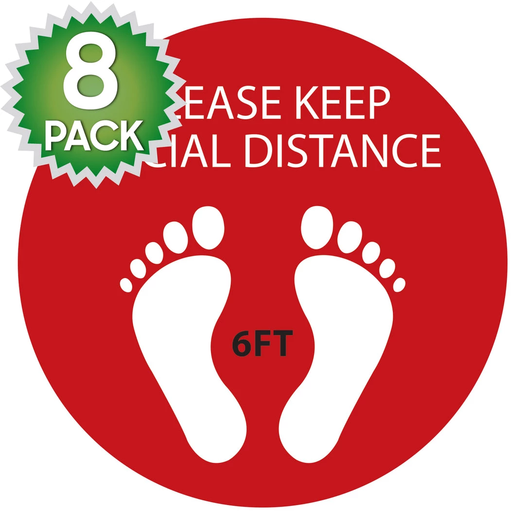 Help customers and employees stay safe with the 6ft social distancing floor decal reminder. Made of durable materials, the decal will not wear out due to heavy foot traffic nor tear into small pieces. To install, simply clean the floor and let it dry. Then peel the back of the decal and place it onto the flat, dry surface. To remove, simply peel off the decal, no residue will be left behind. Extremely convenient to use in shopping centers, grocery stores, banks, pharmacies, and more to help maintain social distancing.