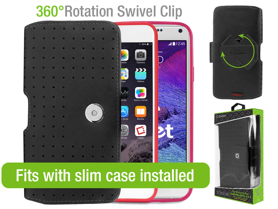 The Teramo Series exudes sophistication. Built to fit the Apple iPhone 12 Pro Max / Samsung Note 20 / Galaxy S21 Ultra. It is created with high-grade class leather, has a secure magnetic flap and elastic sides to accommodate your phablet with a slim case installed. The heavy-duty 360-degree rotating swivel clip lets you place your device in any desired position.