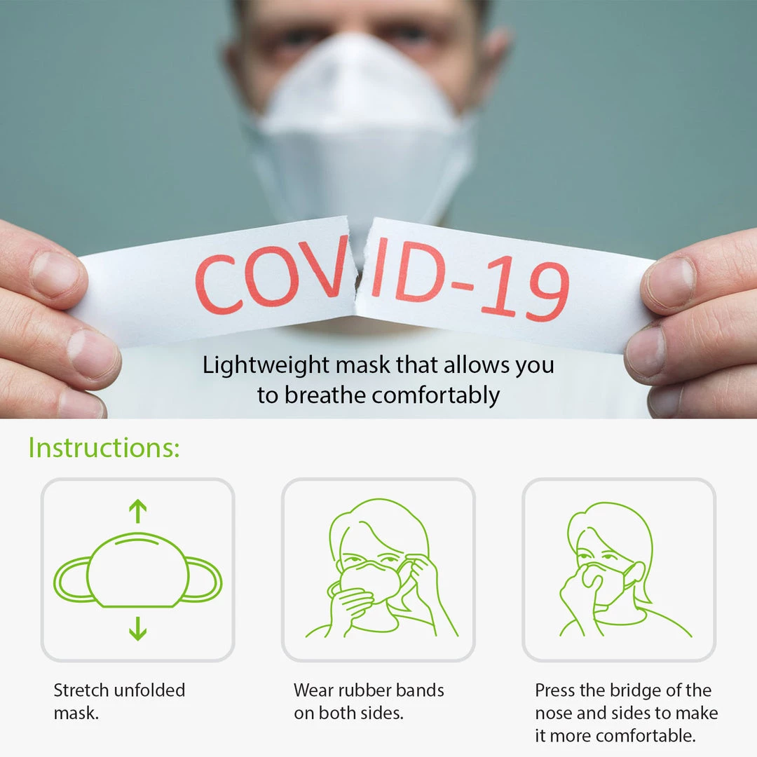 A lightweight mask provides comfort while also protecting you from germs, pollution, and dust. This disposable face mask comes in a 10 pack, please dispose of it after each use. The face mask allows you to breathe comfortably while doing your daily activities. Equipped with elastic ear loops that fit comfortably around your ears, without putting too much pressure. This protective face mask covers your nose, mouth, and chin. To use, open the mask and stretch the top and bottom of the mask. Then, put elastic loops on your ears. Pinch the bridge of the nose and sides to secure in place.