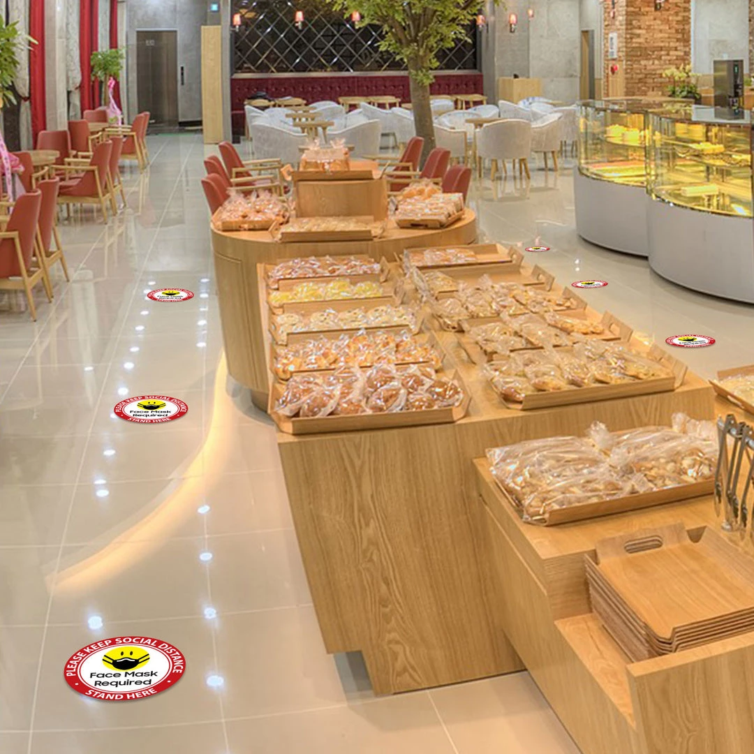 Help customers and employees stay safe with the 6ft social distancing floor decal reminder. Made of durable materials, the decal will not wear out due to heavy foot traffic nor tear into small pieces. To install, simply clean the floor and let it dry. Then peel the back of the decal and place it onto the flat, dry surface. To remove, simply peel off the decal, no residue will be left behind. Extremely convenient to use in shopping centers, grocery stores, banks, pharmacies, and more to help maintain social distancing.