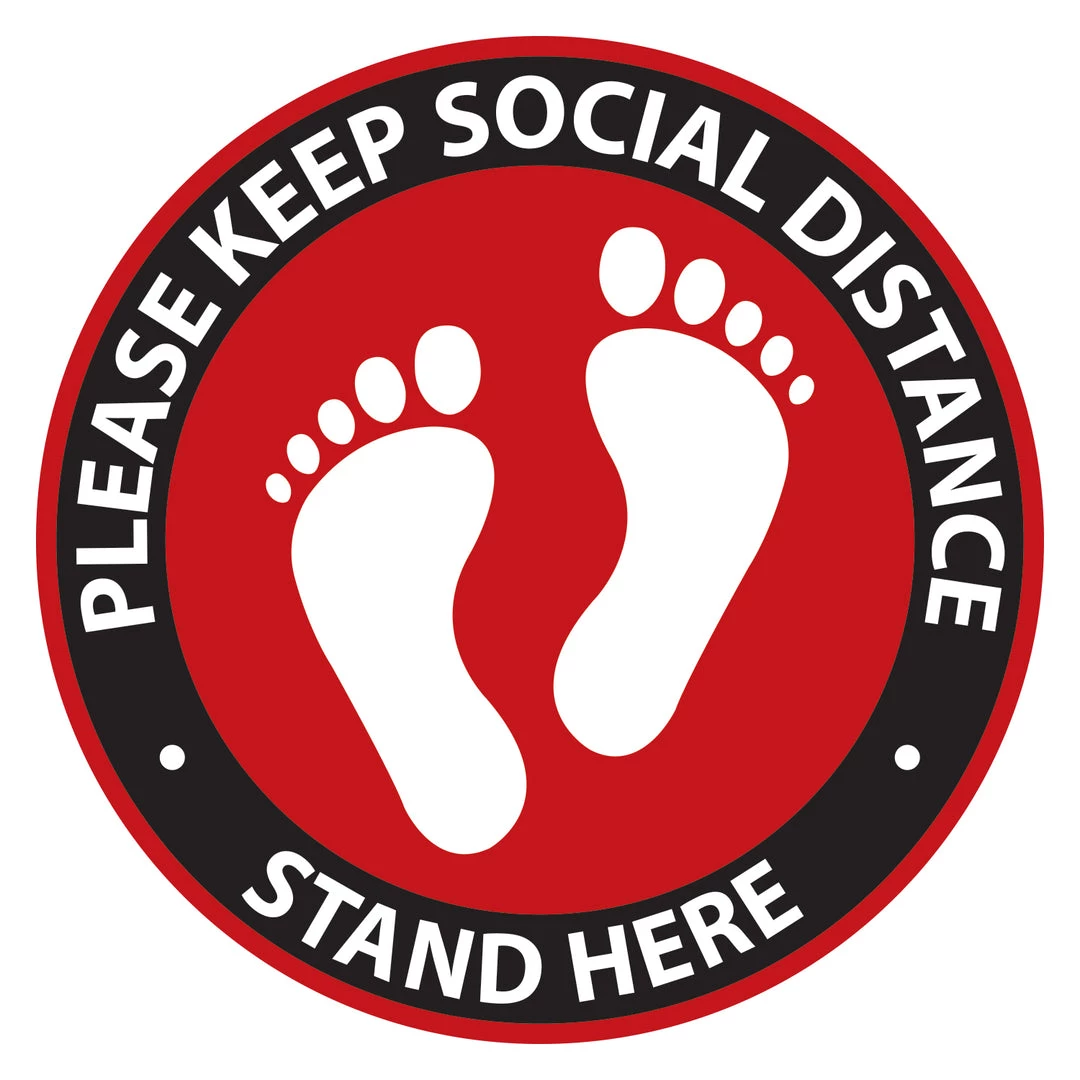 Help customers and employees stay safe with the 6ft social distancing floor decal reminder. Made of durable materials, the decal will not wear out due to heavy foot traffic nor tear into small pieces. To install, simply clean the floor and let it dry. Then peel the back of the decal and place it onto the flat, dry surface. To remove, simply peel off the decal, no residue will be left behind. Extremely convenient to use in shopping centers, grocery stores, banks, pharmacies, and more to help maintain social distancing.