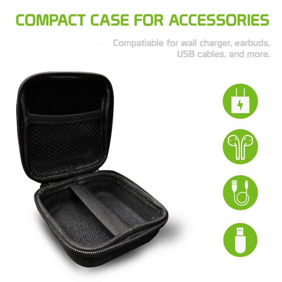 - Universal – Compact Case for Accessories. Compatible for the wall charger, earbuds, USB, USB cables, and more. Simply carry it anywhere you go!