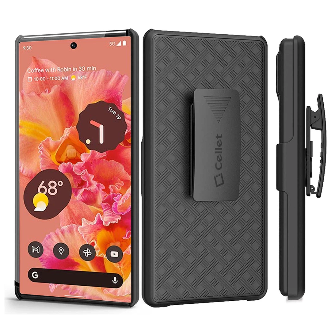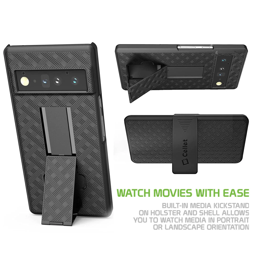 Cellet Wholesale HLGOOPX6 – Pixel 6 Holster, Shell Holster Kickstand Case With Spring Belt Clip For Google Pixel 6 – Black – By Cellet New Arrivals
