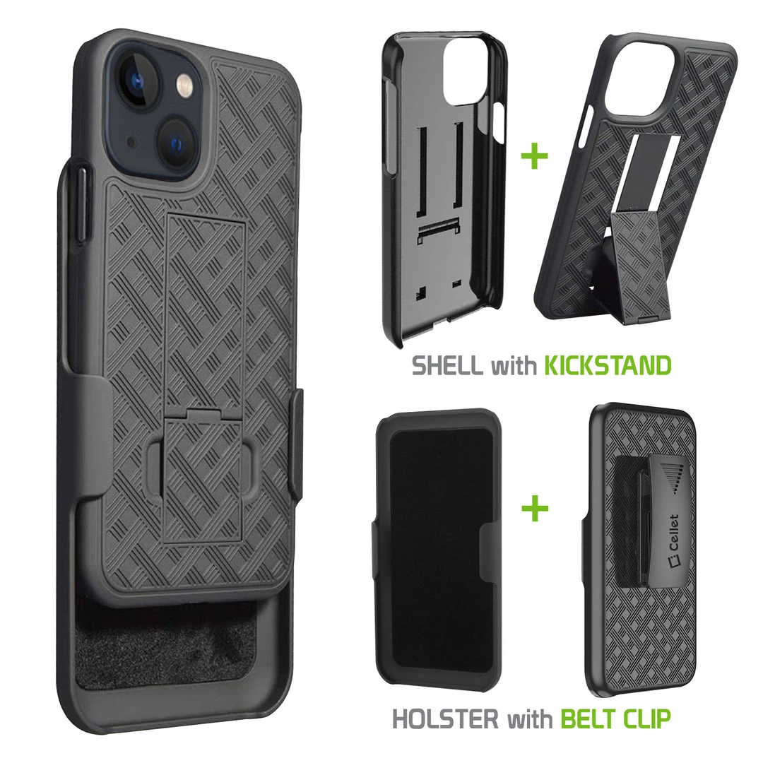 Combining protection with functionality, this shell plus holster case allows you to carry your device with ease while providing maximum all-around protection. Built-in media kickstand allows viewing in landscape (horizontal) or portrait (vertical) orientation.The case easily slips into the heavy duty holster, so you can carry your phone either face up or face down. In addition, the belt clip includes 180-degree rotation capability so you can position the holster at any desired angle. The holster and hard shell combo case comes in all black and contains TPU, rubberized soft coating, which aids as an extra step of precaution against accidental cosmetic damage. Look no further! The slim profile and the multi-functionality of this product merge style, versatility, and supreme protection.