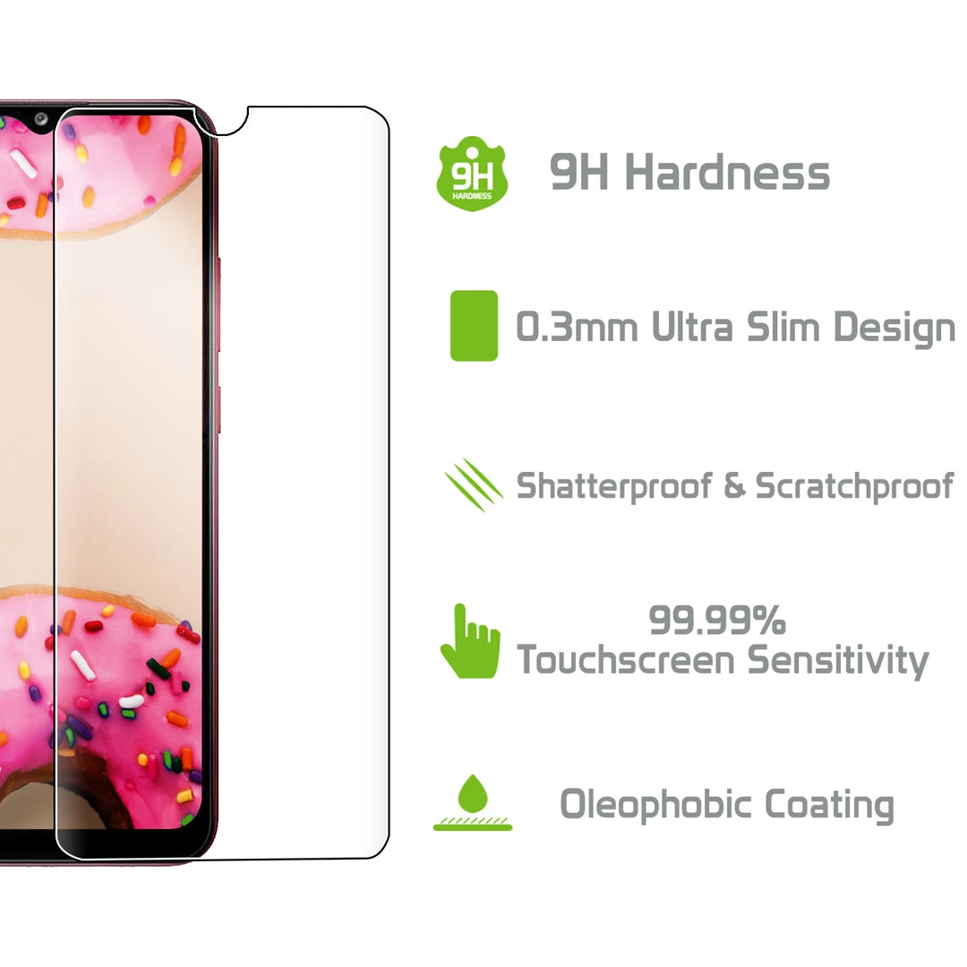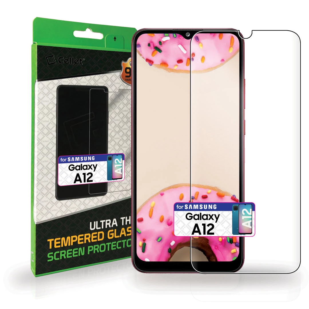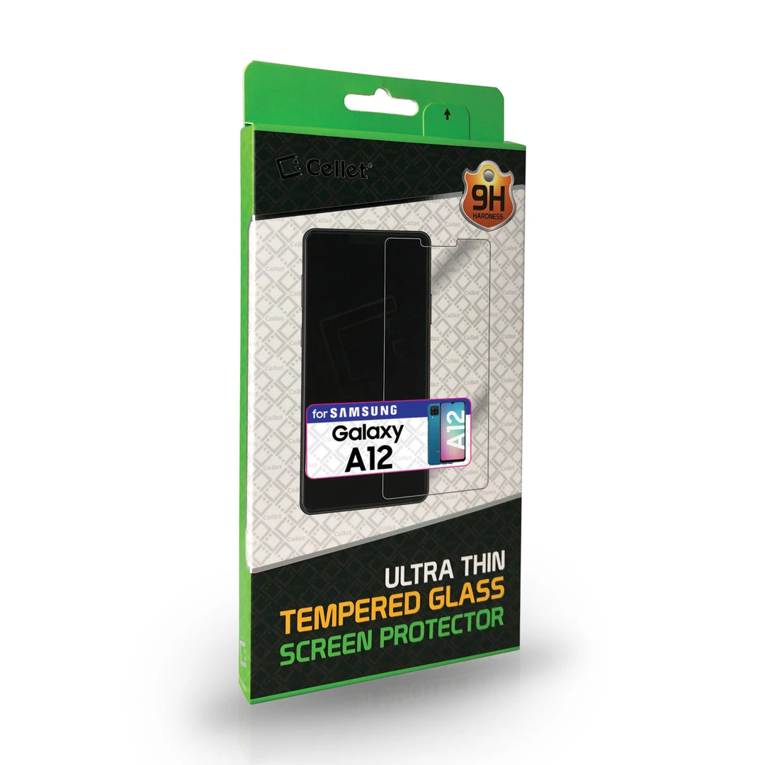 Protect your Samsung Galaxy A12 screen with the Cellet Premium Ultra-Thin Tempered Glass Screen Protector. Precisely cut for the Samsung Galaxy A12, the screen provides the ultimate protection for your screen without sacrificing touchscreen capabilities. Each tempered glass screen protector provides 9H hardness strength with minimal thickness, offering scratch-proof protection without added space and its oleophobic coating gives resistance against smudges and fingerprints. Simple to install, the package includes an alcohol wipe, blue film, microfiber cloth, and sticker directions to assist in the application of the screen.