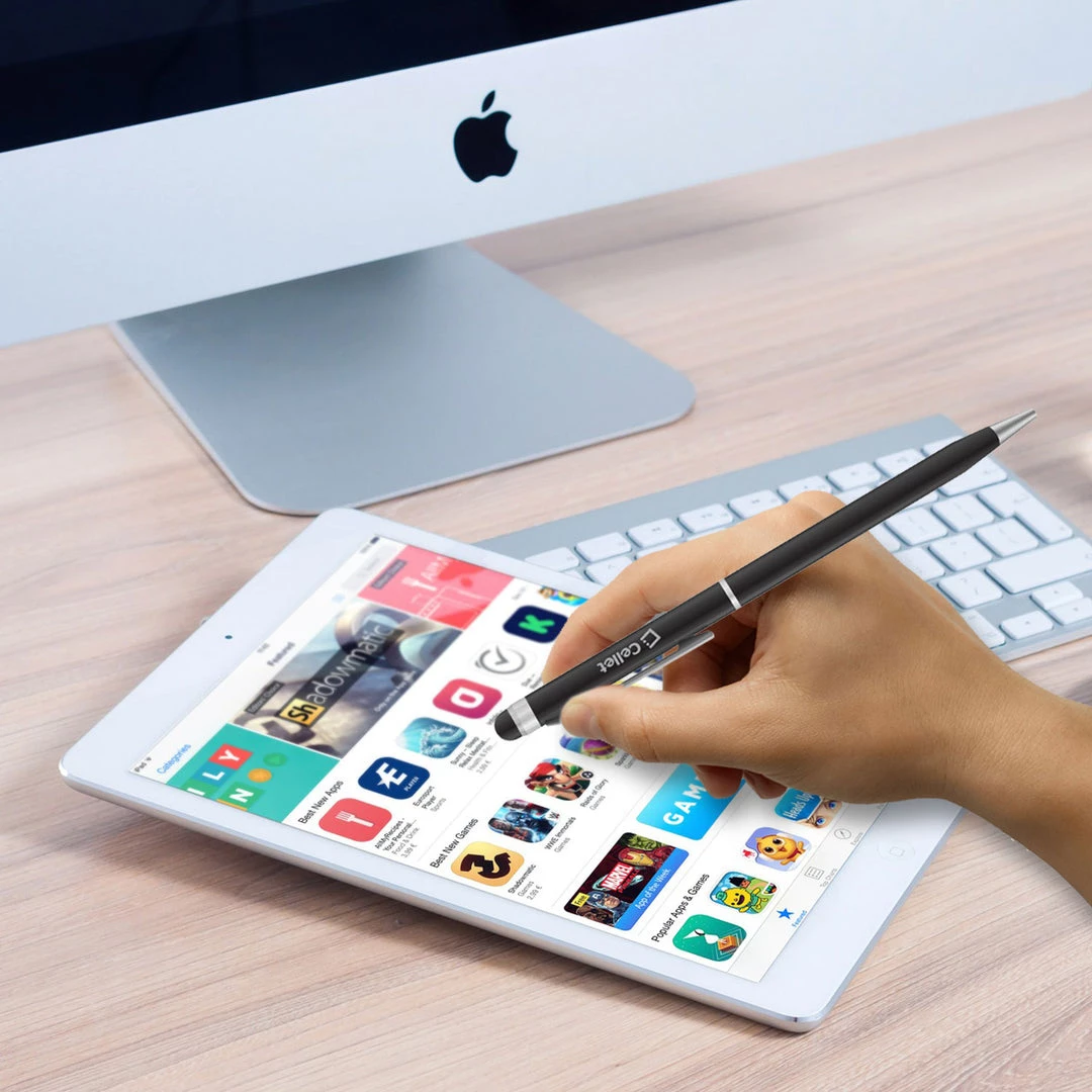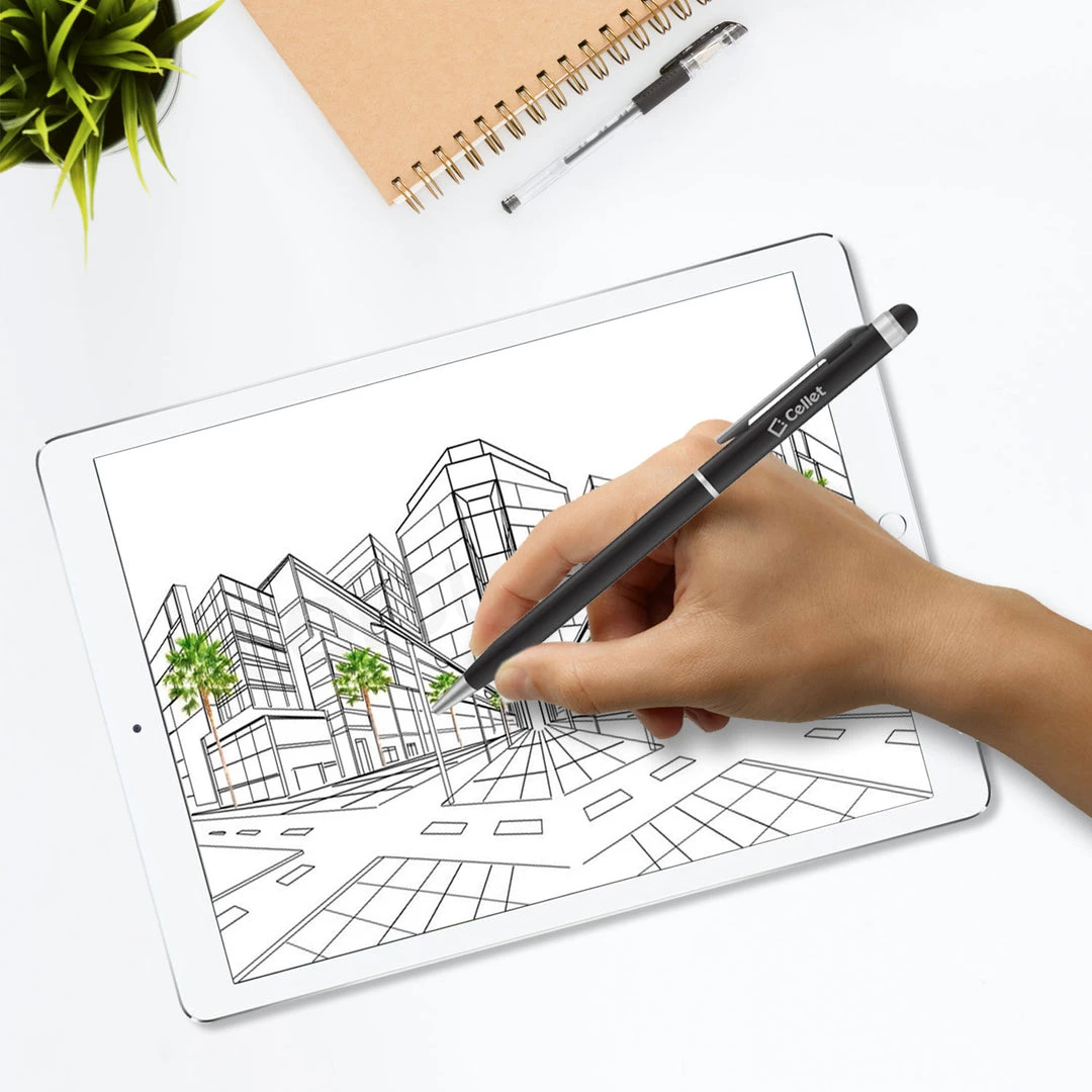 Using the latest technology, the Cellet Universal Stylus + Ink Pen is as responsive as your fingers. With a durable rubber tip, it will not scratch your screen and allows you to type or draw accurately and comfortably. Simply push the top of the stylus pen and the medium point pen will pop out of the rubber tip; this convenient combination is perfect for jotting down notes as you search for information on your smartphone or tablet. The attached pen clip allows you to attach it to your book, diary, or shirt pocket and the internal ink cartridge is replaceable.