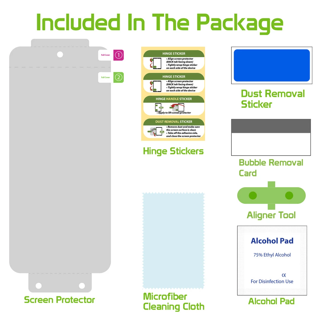 - Package includes 1 TPU screen protector, blue film dust remover, alcohol wipe, microfiber cloth and application instructions, aligner tool.