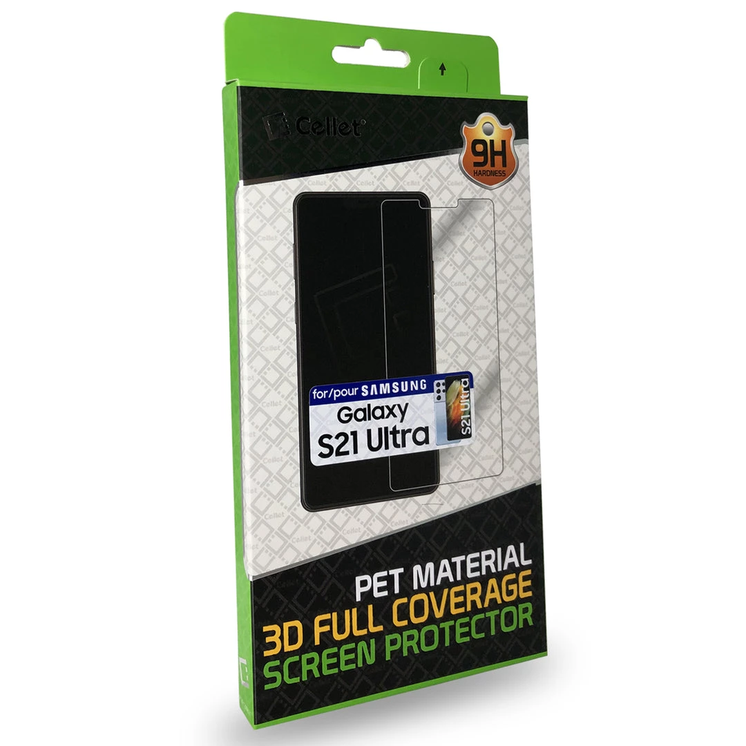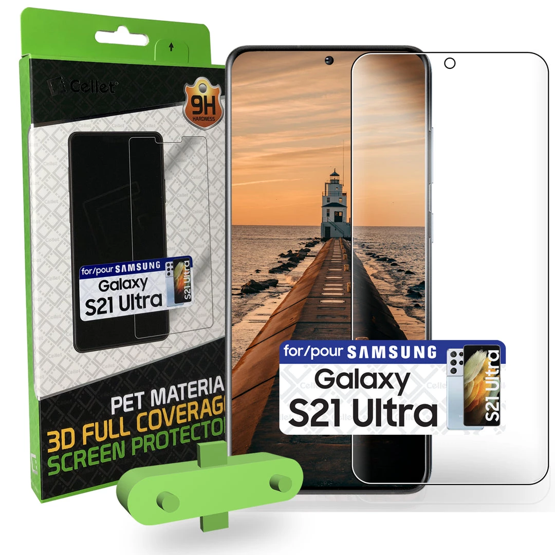 Keep your Samsung Galaxy S21Ultra screen looking brand new with the Cellet TPU screen protector. Precisely cut for the Samsung Galaxy S21 Ultra, the screen provides the ultimate protection for your screen without sacrificing touchscreen capabilities. Made of high-quality TPU film, this invisible screen protector fully protects your curved device from scratches, abrasion, and fingerprints. The film is easily installed and removed with no leftover residue. Along with the screen protector, the package includes an air bubble squeezer and a microfiber cleaning cloth.