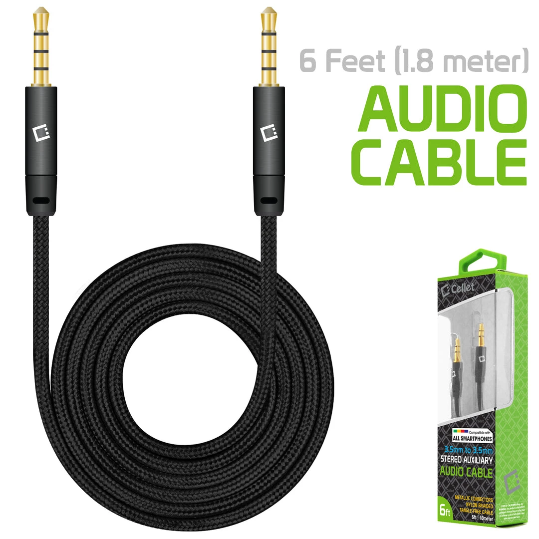 Connect your smartphone, tablet, or MP3 player to your home or car stereo system and listen to high-quality sound with the 3.5mm Premium Anti-Tangle Braided Audio Cable. The cable is surrounded by a braided nylon jacket that gives extra durability and gold plated connectors provide first-class sound through your car stereo or home entertainment speakers. Containing a standard 3.5mm auxiliary, it provides a direct-wired connection that is free of static and FM interference.