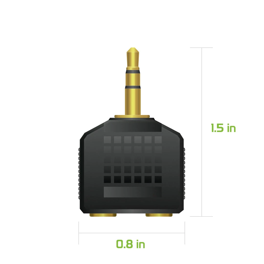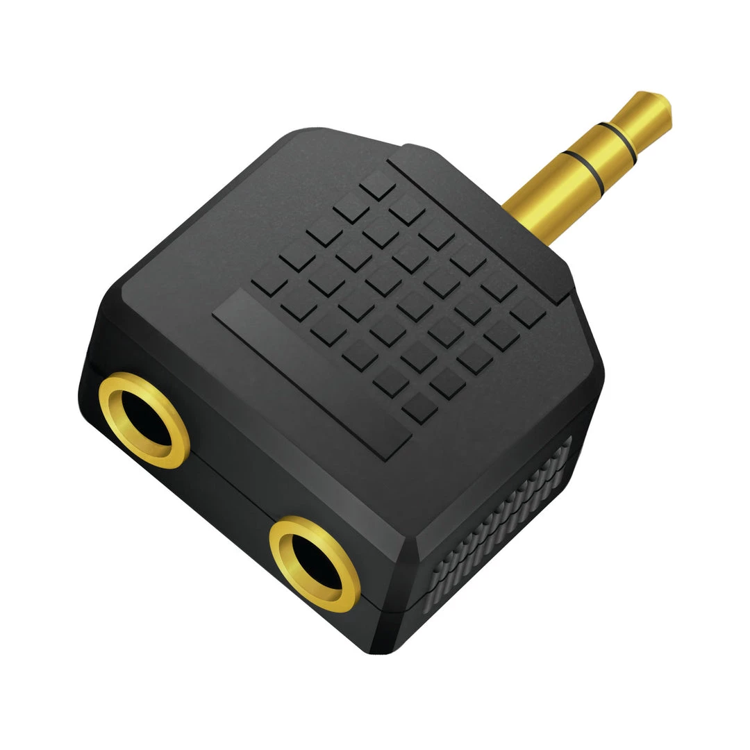 - Allows 2 sets of 3.5 mm speakers (or headphones) to be connected to a single 3.5 mm stereo jack