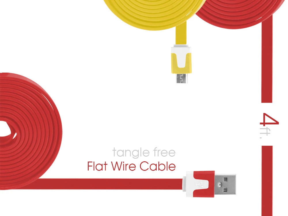 - 4 foot flat wire cable, tangle free