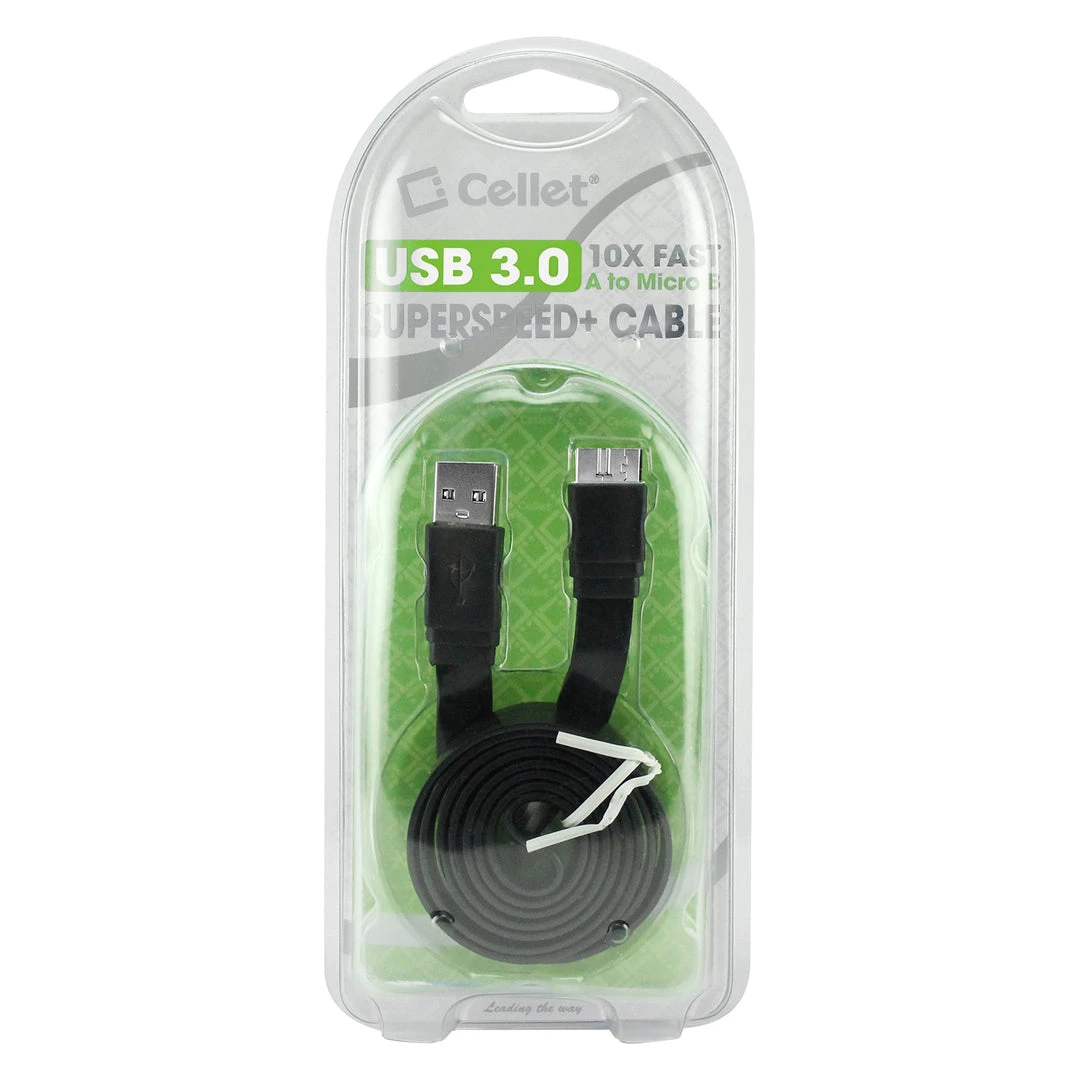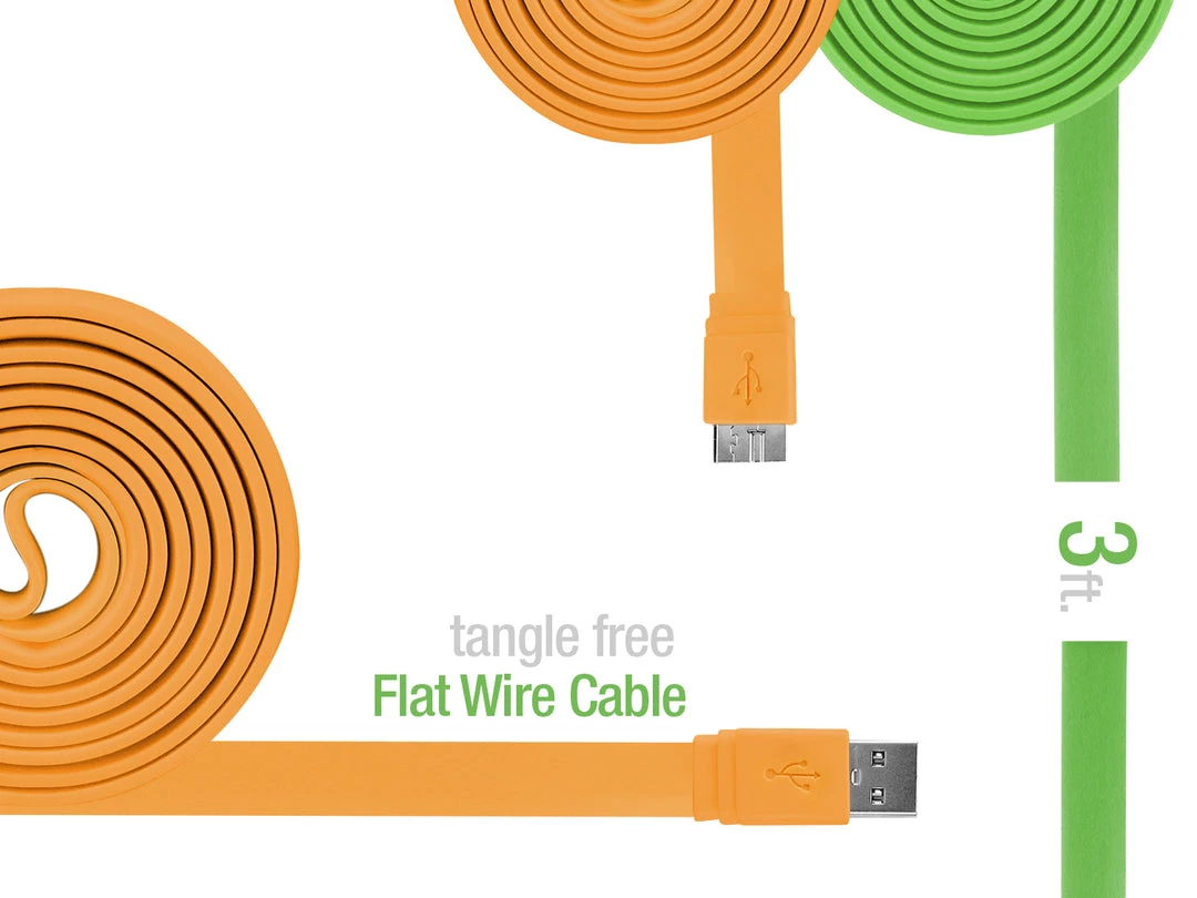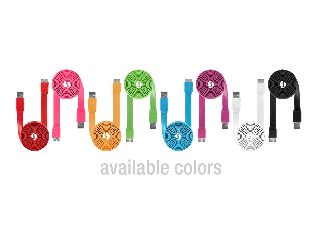 Transfer data in no time with the Cellet SuperSpeed USB 3.0 Type A to Micro-B Flat Cable. Offering a transfer rate of up to 5Gbps when connected to a USB 3.0 host and device, it transmits data 10 times faster than the USB 2.0 (480Mbps) and provides improved power efficiency. The cable is backward compatible; therefore it can be used for devices that are USB 2.0 or 1.1 compliant. Assorted colors are available.