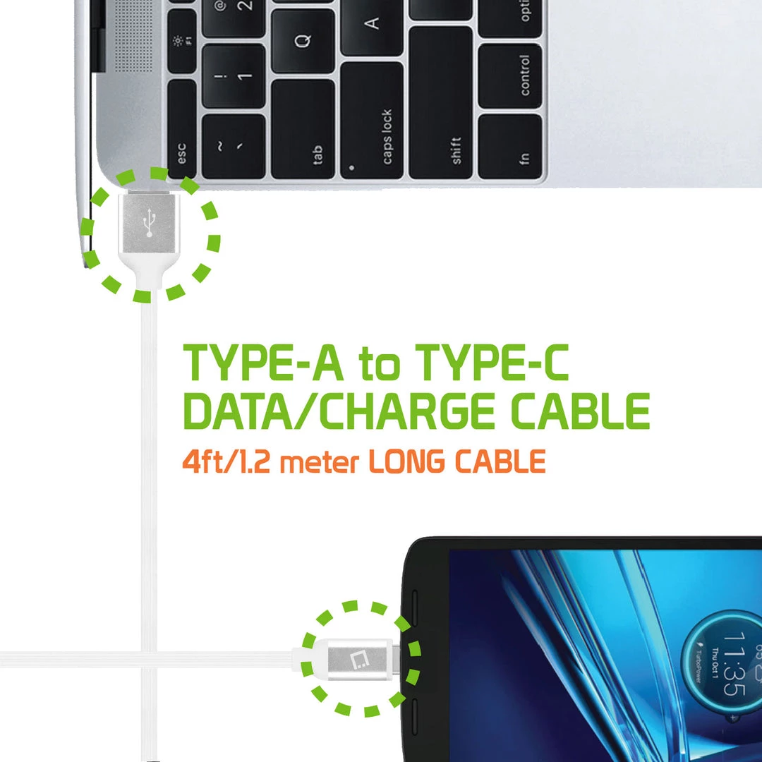 Obtain the content in your device with our cleverly designed type A to C data cable. Sync and transfer your files from your computer to your device or vice versa. High power availability to charge your device at a rapid rate. Type A to C cable simplifies your connection, simply plug the cable into your phone and transfer content easily. Four feet cable length offers freedom to connect the device to a wall charger or to a host computer with a USB-C port.