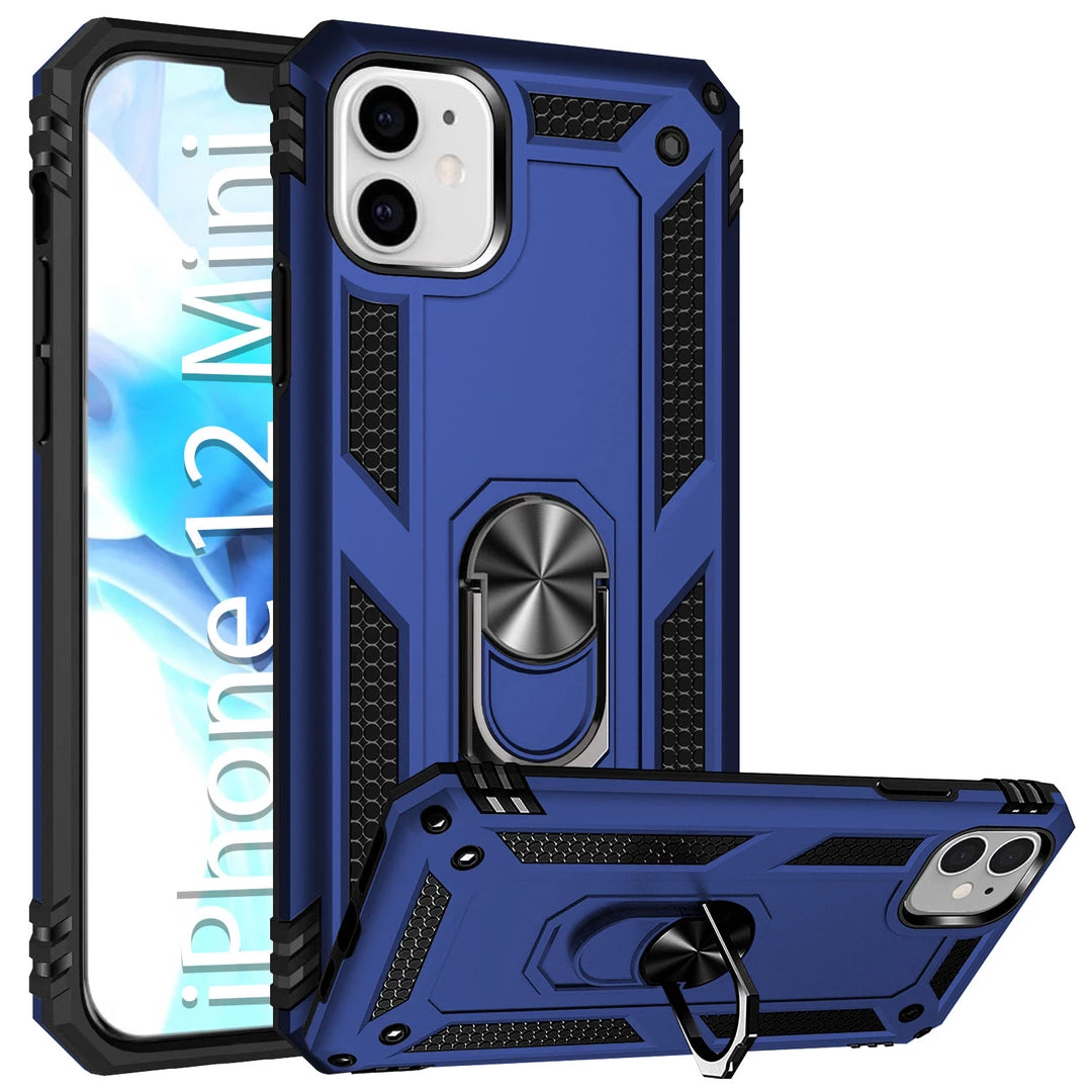 Combining protection with functionality, this Shockproof Combo Case allows you to carry your device with ease while providing maximum all-around protection. This case was made exclusively for the Apple iPhone 12 mini and contains a built-in media kickstand that allows viewing in landscape (horizontal) or portrait (vertical) orientation. Featuring an extra-strong magnet, simply hover the phone onto the holder and it will quickly snap on; your device can be positioned at any desired angle. The metal ring is used as a finger support cradle while using your device to hold your phone securely with a safe, tight grip and prevent costly accidental drops. The shockproof combo case comes in black color and contains TPU, rubberized soft coating, which aids as an extra step of precaution against accidental cosmetic damage. The slim profile and the multi-functionality of this product merge style, versatility, and supreme protection.