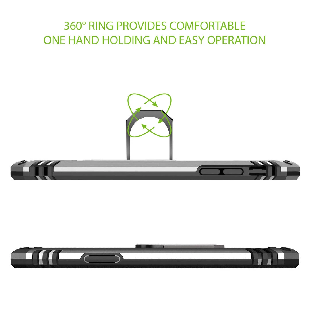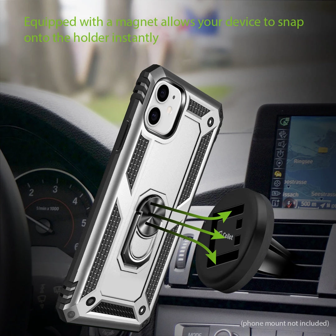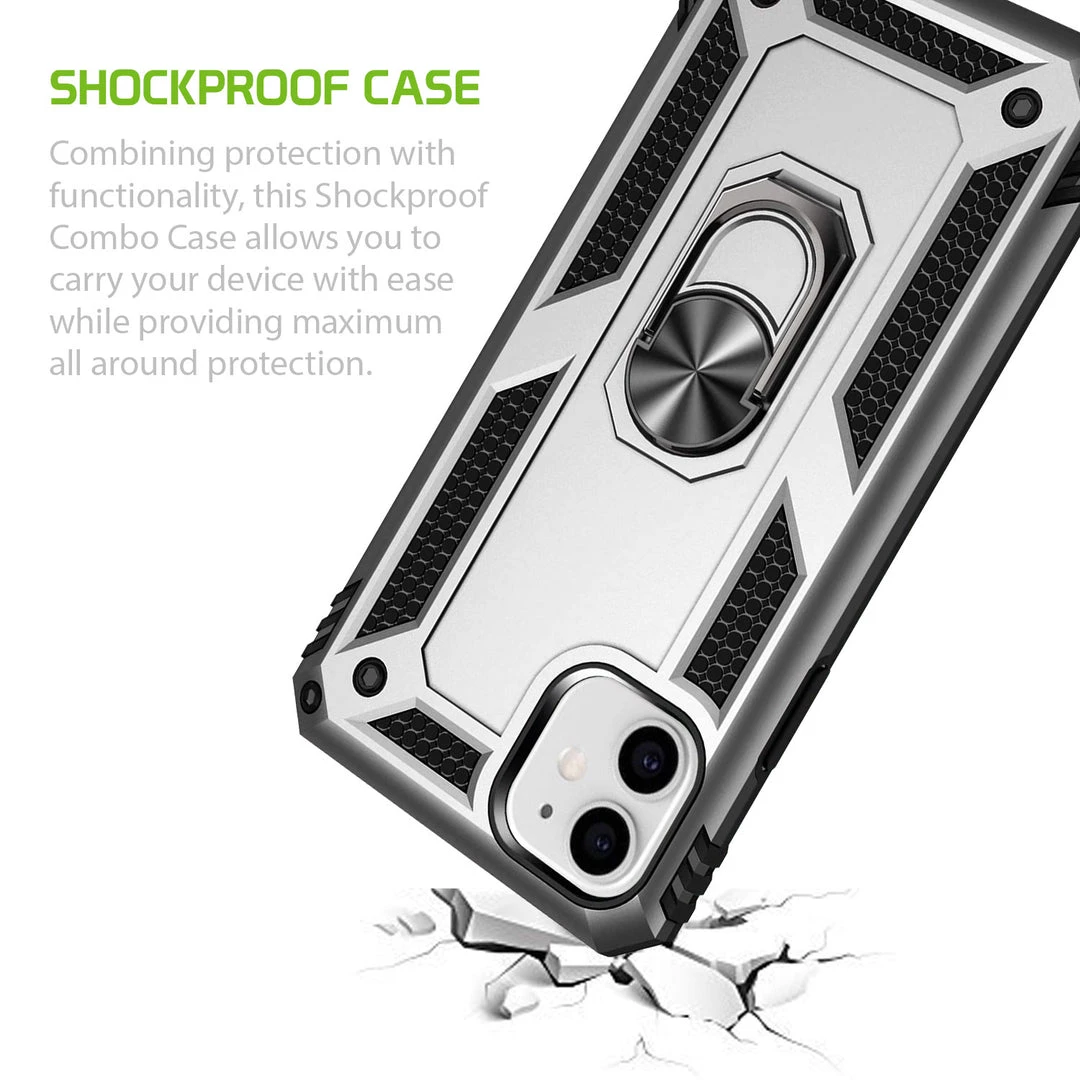 Combining protection with functionality, this Shockproof Combo Case allows you to carry your device with ease while providing maximum all-around protection. This case was made exclusively for the Apple iPhone 12 mini and contains a built-in media kickstand that allows viewing in landscape (horizontal) or portrait (vertical) orientation. Featuring an extra-strong magnet, simply hover the phone onto the holder and it will quickly snap on; your device can be positioned at any desired angle. The metal ring is used as a finger support cradle while using your device to hold your phone securely with a safe, tight grip and prevent costly accidental drops. The shockproof combo case comes in black color and contains TPU, rubberized soft coating, which aids as an extra step of precaution against accidental cosmetic damage. The slim profile and the multi-functionality of this product merge style, versatility, and supreme protection.