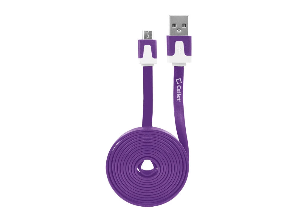 Charge and/or sync your micro USB compatible device with your computer with the Cellet Flat Wire Micro USB Charging/Data Cable. The cable can be used with any micro USB device such as the Samsung Galaxy S3, S4, Note 3, HTC One, Blackberry, etc. Assorted colors are available.