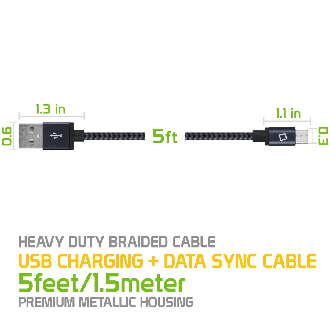 Charge and / or sync your micro USB compatible device with your computer with the Cellet 5 Ft. Micro USB Charging / Data Cable. 5 Ft. cable gives you more flexibility as you charge / transfer data to your device. The cable is compatible to all micro USB ready devices such as Android, tablets, digital cameras, MP3 players and more.