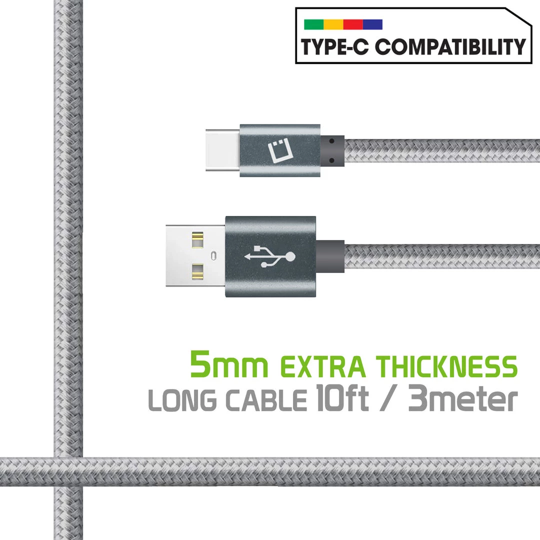 Sync or charge your USB-C compatible device to your computer with the Cellet USB Type-A to USB Type-C Charging Data Sync Cable. Featuring a reversible USB-C connector, it can be inserted into a compatible port in any orientation and the standard USB Type-A can be plugged into a wall power adapter for rapid charging. Made of robust materials, the premium metallic housing and extra-thick 5mm 10ft. durable nylon braided cable can withstand 5000+ bends. Built-in 56k Ohm pull-up resistor conforms to the USB Type-C specification that supports the maximum 2.4A safe charging and offers 480 Mbps data transfer speeds, perfect to charge or sync your smartphone, tablet, hard drive or camera to your Type-C enabled device.