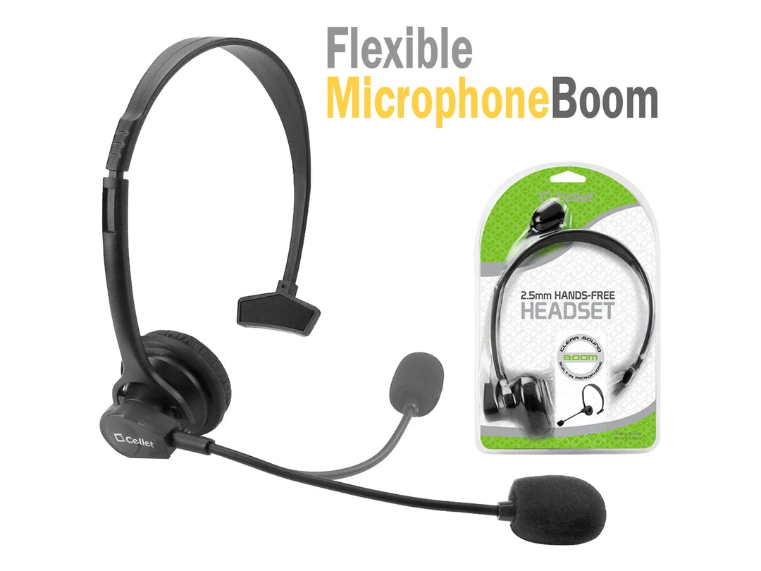 Multi-task effortlessly by talking on your phone while driving or working with the Cellet Universal Mono 2.5mm Hands-Free Headset with Boom Microphone. Featuring an adjustable headband and flexible boom microphone, the headset can accommodate various head sizes and desired angles. The headset can be worn in either the right or left ear and the comfortable ear speaker produces clear sound quality. The Cellet headset is universally compatible with any device containing a 2.5mm headphone jack.