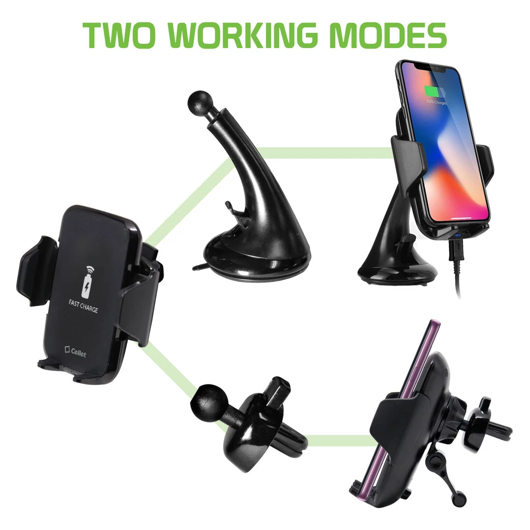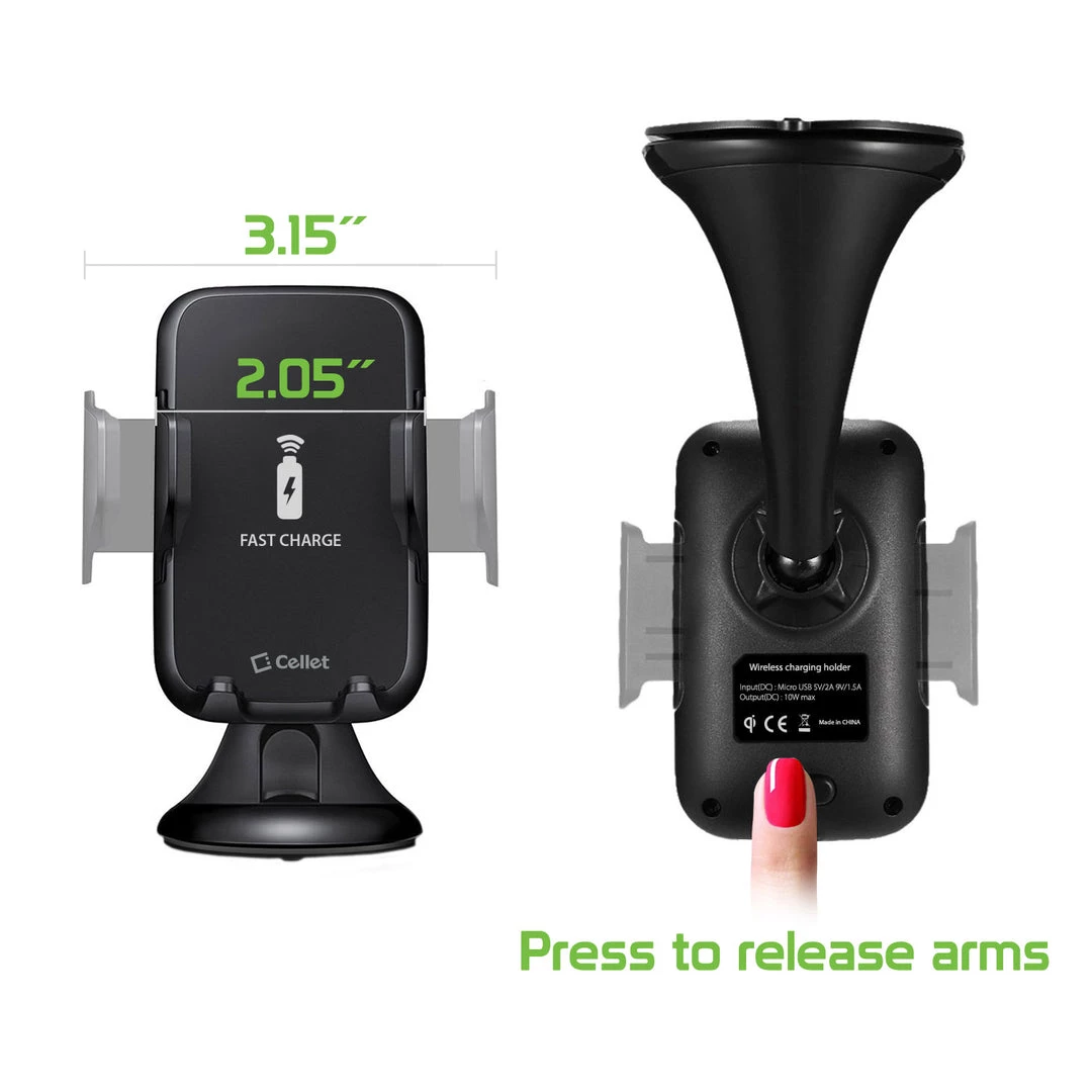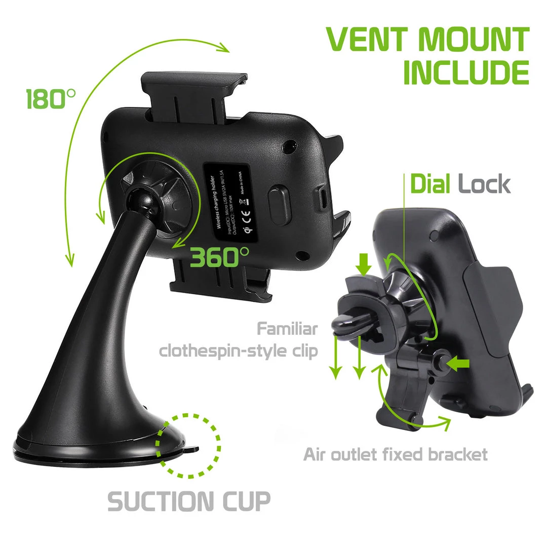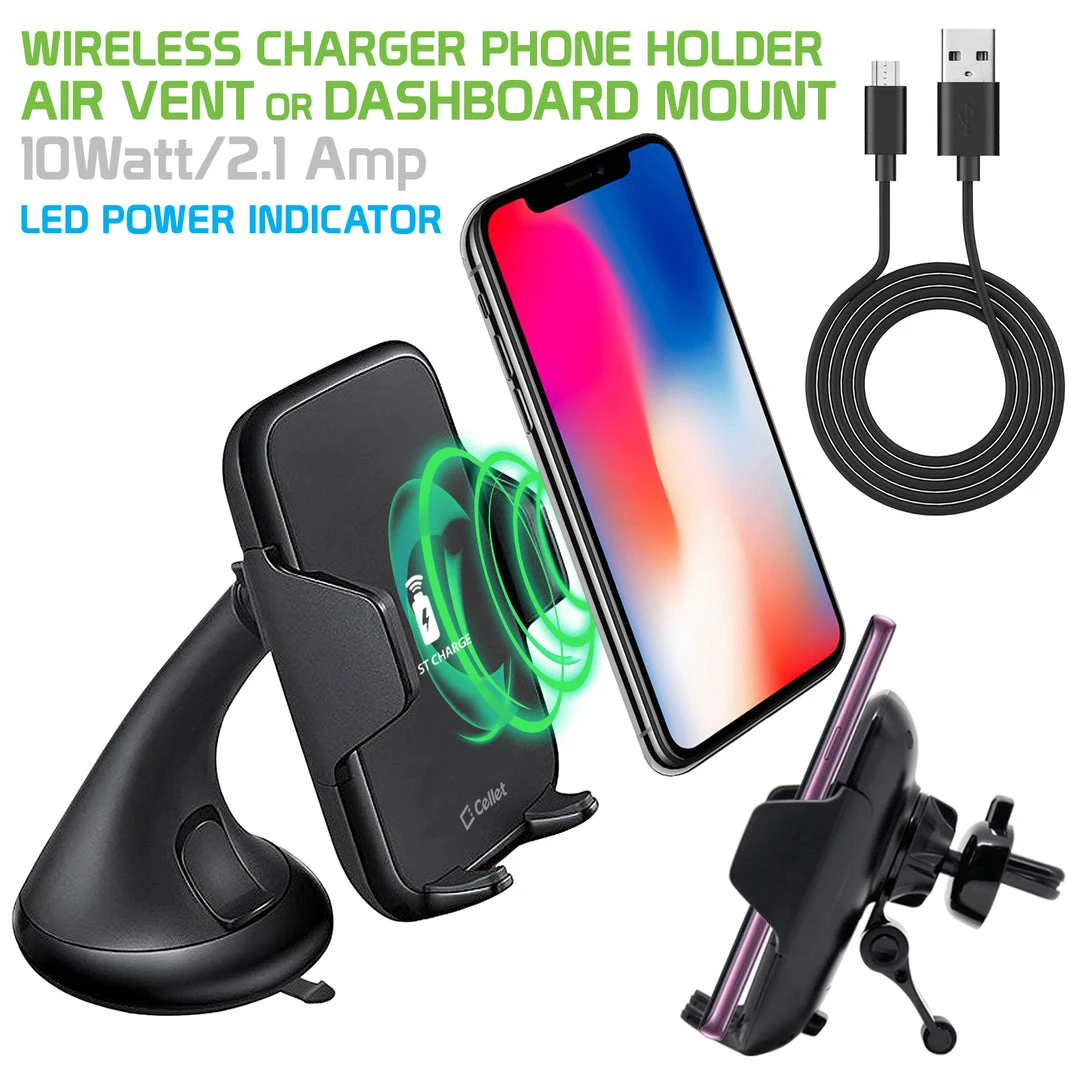 Mount and charge your Samsung Galaxy S9 in your vehicle with the Wireless Charging Air Vent and Dashboard Phone Mount. Simply screw the cradle onto the base of your liking, air vent, or the dashboard mount. The cradle has non-slip rubberized arms that hold your device in place and helps prevent any scratches on your device. The swivel ball provides 360-degree rotation to view your device in any desired angle. The cradle will charge wirelessly with any base you choose, simply place your QI-enabled device onto the charging pad. Please note: Your device must be wireless charging enabled or have a wireless charging receiver installed. Wireless charging receiver sold separately.