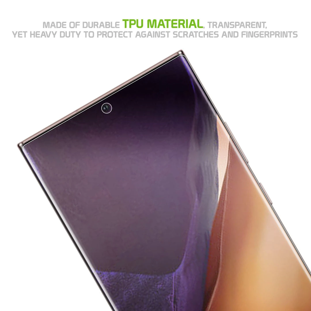 Keep your Samsung Galaxy Note 20 Ultra screen looking brand new with the Cellet TPU screen protector. Precisely cut for the Samsung Galaxy Note 20 Ultra, the screen provides the ultimate protection for your screen without sacrificing touchscreen capabilities. Made of high-quality TPU film, this invisible screen protector fully protects your curved device from scratches, abrasion, and fingerprints. The film is easily installed and removed with no leftover residue. Along with the screen protector, the package includes an air bubble squeezer and a microfiber cleaning cloth.