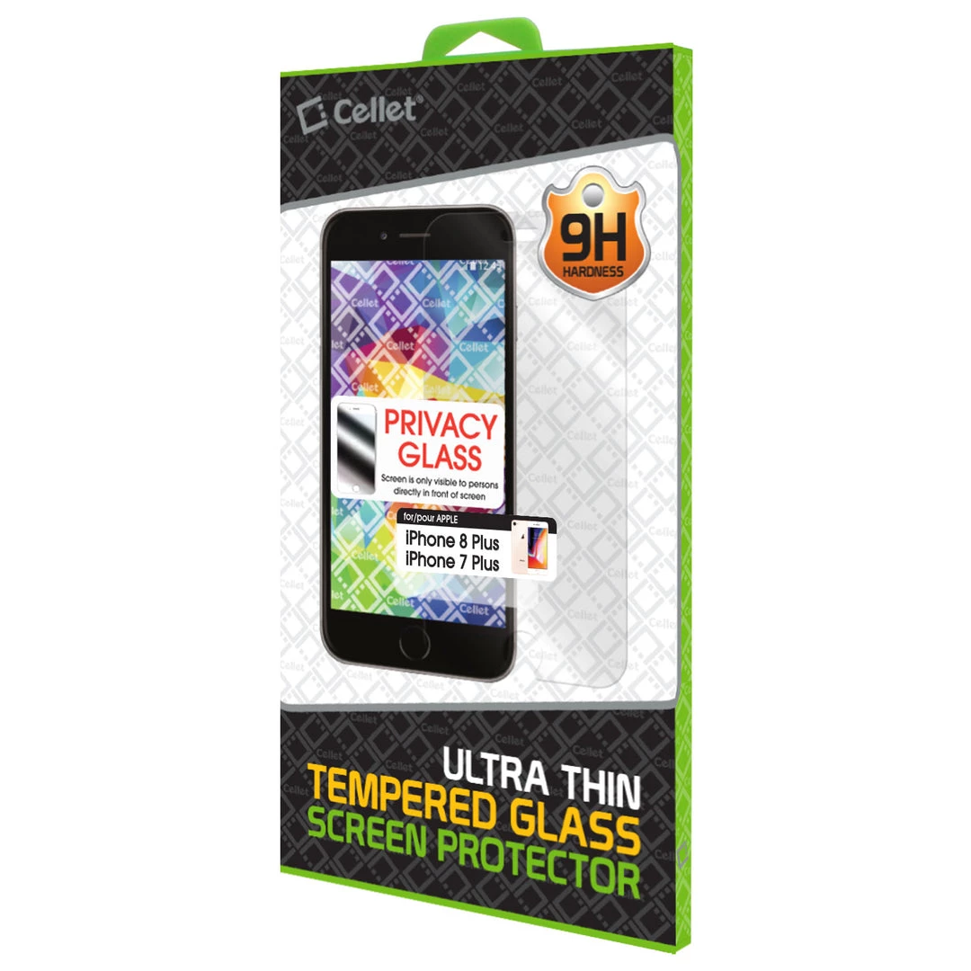Protect your iPhone 7 Plus screen and from prying eyes with the Cellet Premium Tempered Privacy Glass Screen Protector. Precisely cut for iPhone 7 Plus, the screen provides the ultimate protection for your screen without hindering touchscreen capabilities. Each tempered glass screen protector provides 9H hardness strength with minimal thickness, scratch-proof protection, and its oleophobic coating provides resistance against smudges and fingerprints. Featuring a transparent black appearance for extra privacy, the screen can only be viewed at a straight angle and prevents others from looking at your phone. Simple to install, the package includes an alcohol wipe, microfiber cloth, and instructions to assist in the application of the screen.