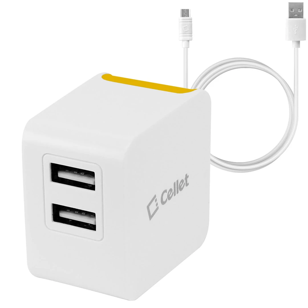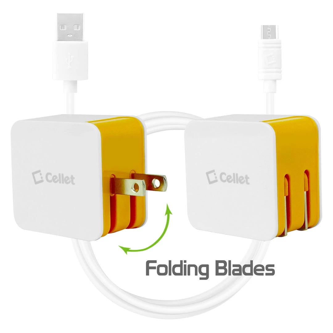 Use existing USB cables to charge various devices with the Cellet Universal High Powered Dual USB Home Charger. Equipped with two (2) USB ports with maximum compatibility, you can charge any USB ready device such as iPhone 6s, iPhone 6s Plus, Samsung S6 Edge+, iPad, tablet, digital camera, GPS and more simultaneously. The built-in smart IC chip technology prevents your device from overcurrent, overcharging and overheating and the foldable blades offer easy storage. The Cellet Charger is perfect as a spare power source for work or home.