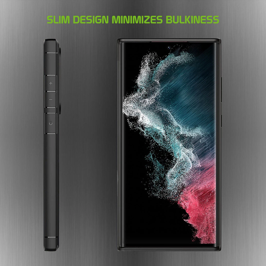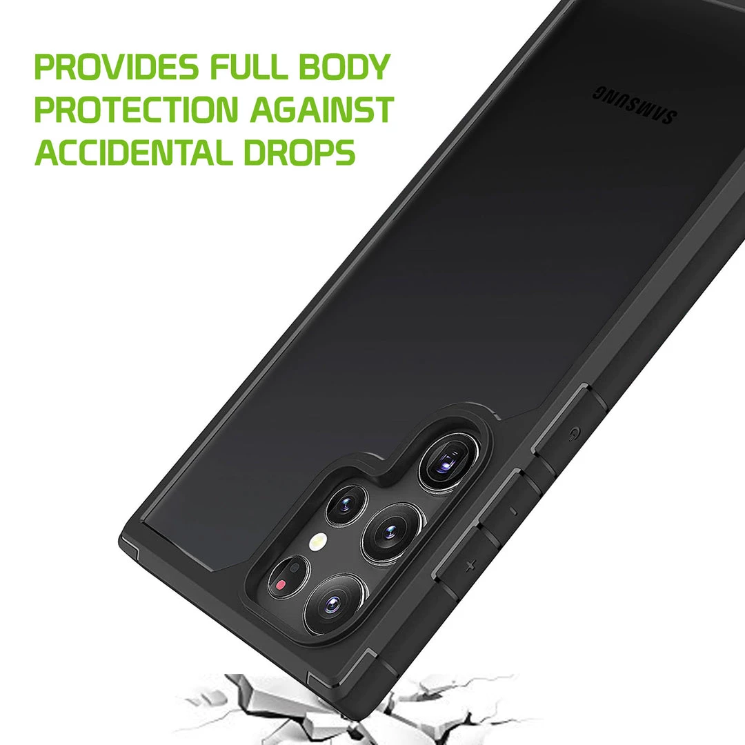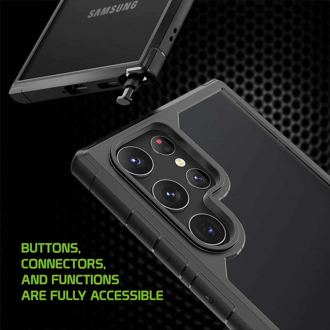 Exclusively made for the Samsung Galaxy S22 Ultra, this case is composed of TPU and durable PC plastic that provides all-around protection against accidental drops. The durable PC plastic protects your Samsung Galaxy S22 Ultra’s exterior from any scratches. The slim, lightweight clear design adds minimal bulk and displays the phone’s original exterior The built-in tactile buttons are highly responsive, and precise cutouts do not hinder accessibility to buttons, controls, bottom speaker, and lightning port.