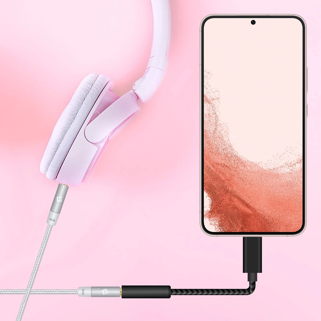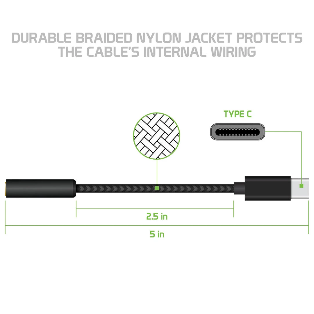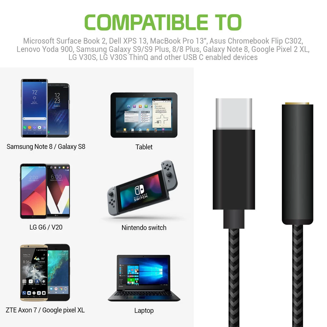 Connect your 3.5mm headphones to your Samsung Galaxy S9, laptop or tablet and listen to high-quality sound with the USB C to 3.5mm Female Headphone adapter. Inner wiring is enclosed in a braided nylon jacket that gives extra durability and slim connectors will fit most premium cases. This heavy-duty braided adapter cable provides first-class sound through your car stereo, Bluetooth speaker, or home entertainment speakers.