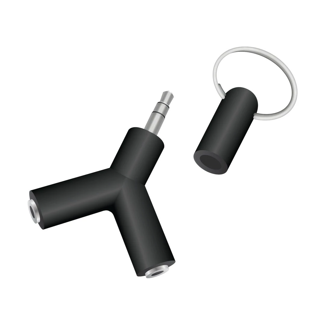 - Get 3 audio keychain splitters for the price of one. You get, 1 WHITE, 1 RED, and 1 BLACK Keychain audio splitters. Easily attach to keys or backpack to keep safe with you while on the go.
