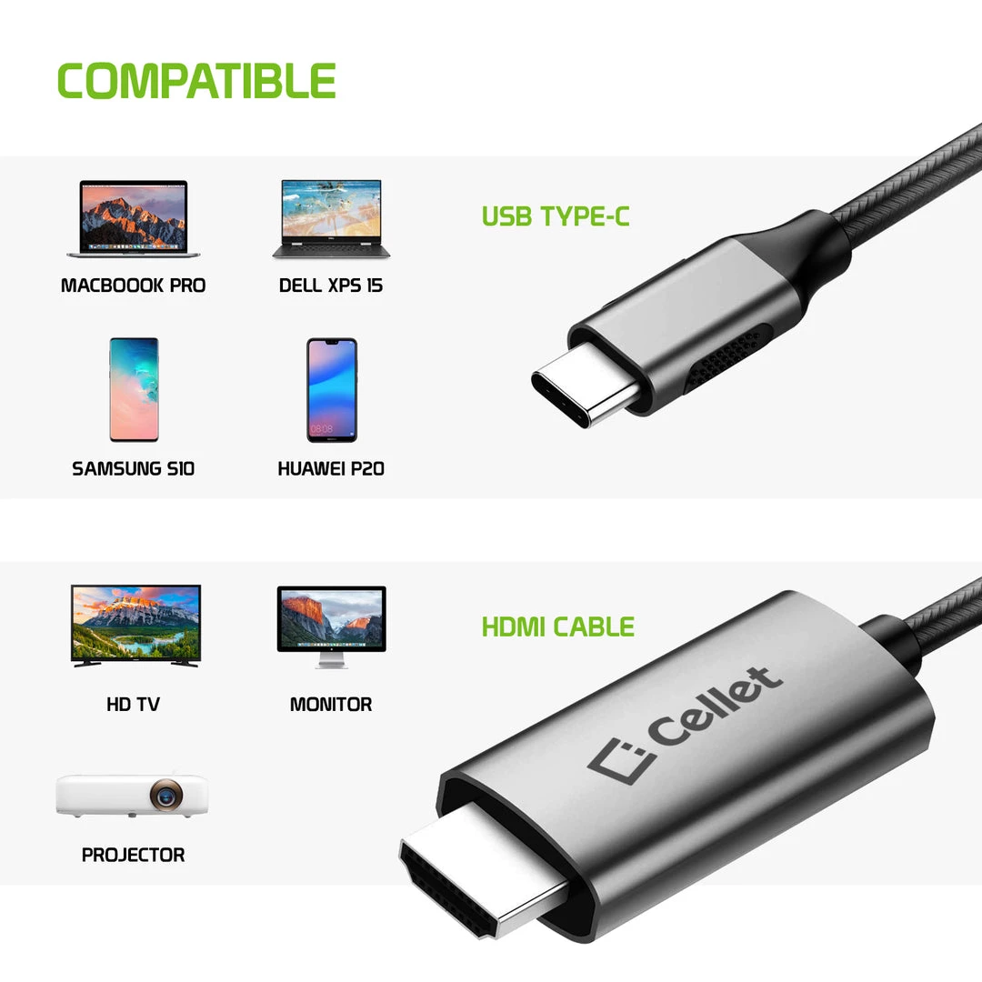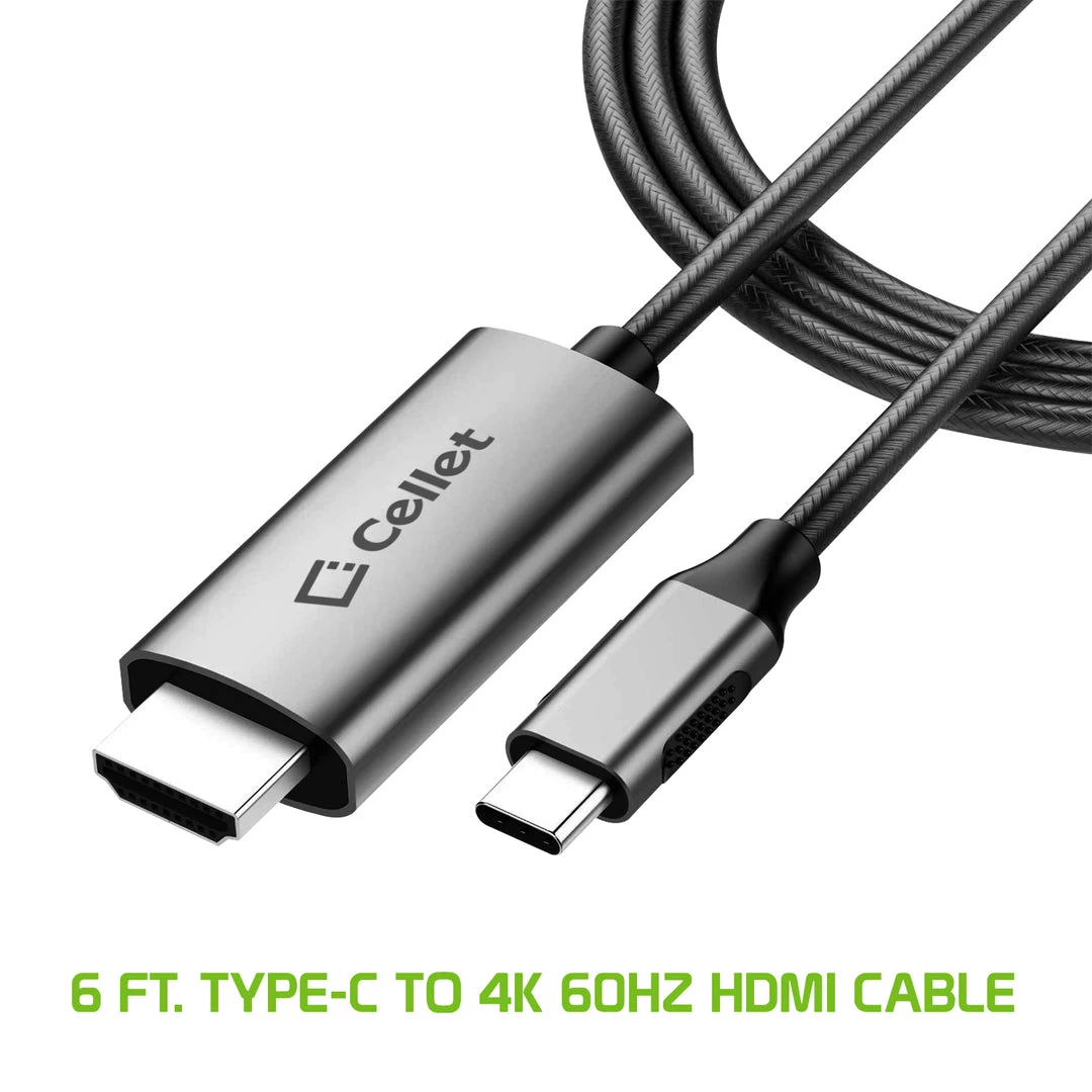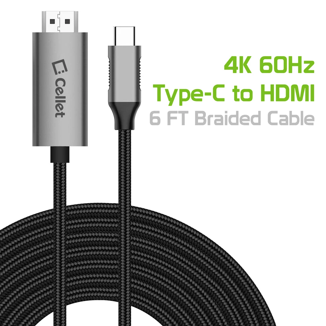Connect your laptop, tablet or type-c smartphone to your 4K LED televisions and projectors effortlessly with the 6ft. male to male USB C to HDMI cable. To begin streaming from your device, simply plug the USB-C connection into your device then plug it into the HDMI port of your television or projector. With a convenient cable length of 6ft, the cable is built with a braided nylon jacket and premium aluminum alloy housing that protects the cable from damage and is made to withstand 4000+ bends. Heavy-duty nylon braided cable protects the cable’s internal wiring to last longer. Simple plug-and-play installation, no need for external drivers or power required. Advanced reversible male USB-C connector can be inserted into an AC adapter or computer in any orientation.