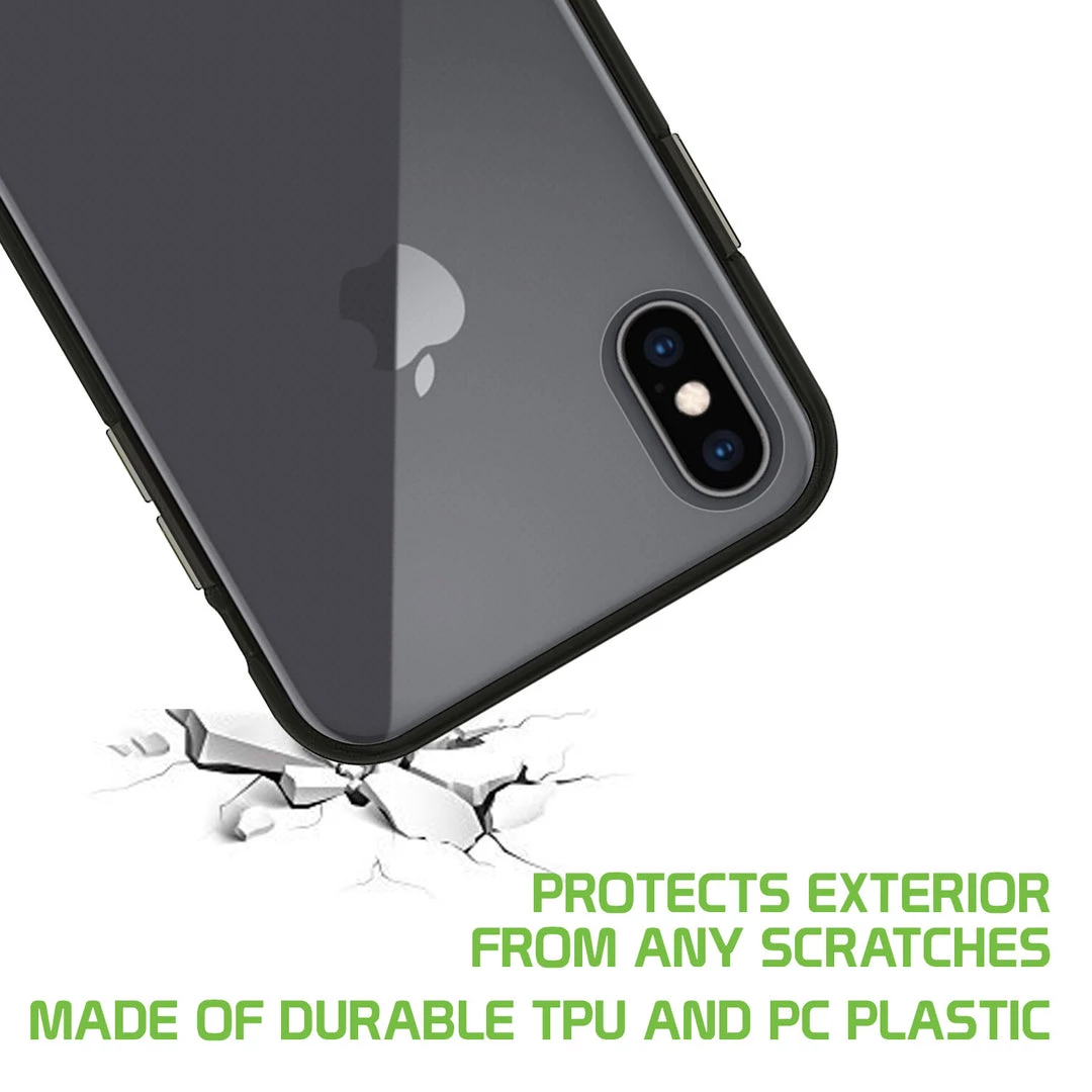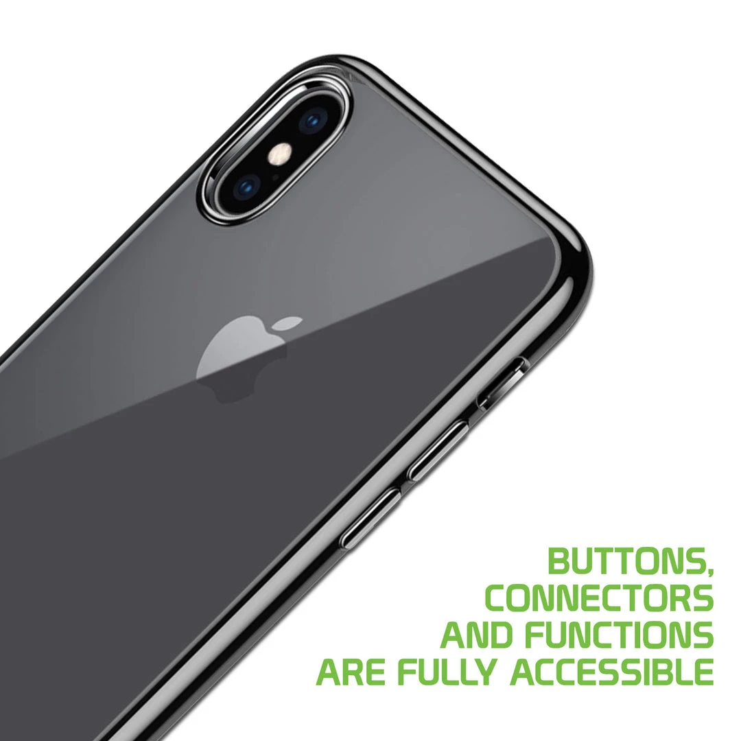 Exclusively made for the Apple iPhone XS Max, this case is composed of TPU and durable PC plastic that provides all-around protection against accidental drops. The durable PC plastic protects your smartphone devices??exterior from any scratches. The slim, lightweight clear design adds minimal bulk and displays the phone?¢æ?s original exterior. Built-in silver tactile buttons are highly responsive and precise cutouts do not hinder accessibility to buttons, controls, bottom speaker and lightning port.