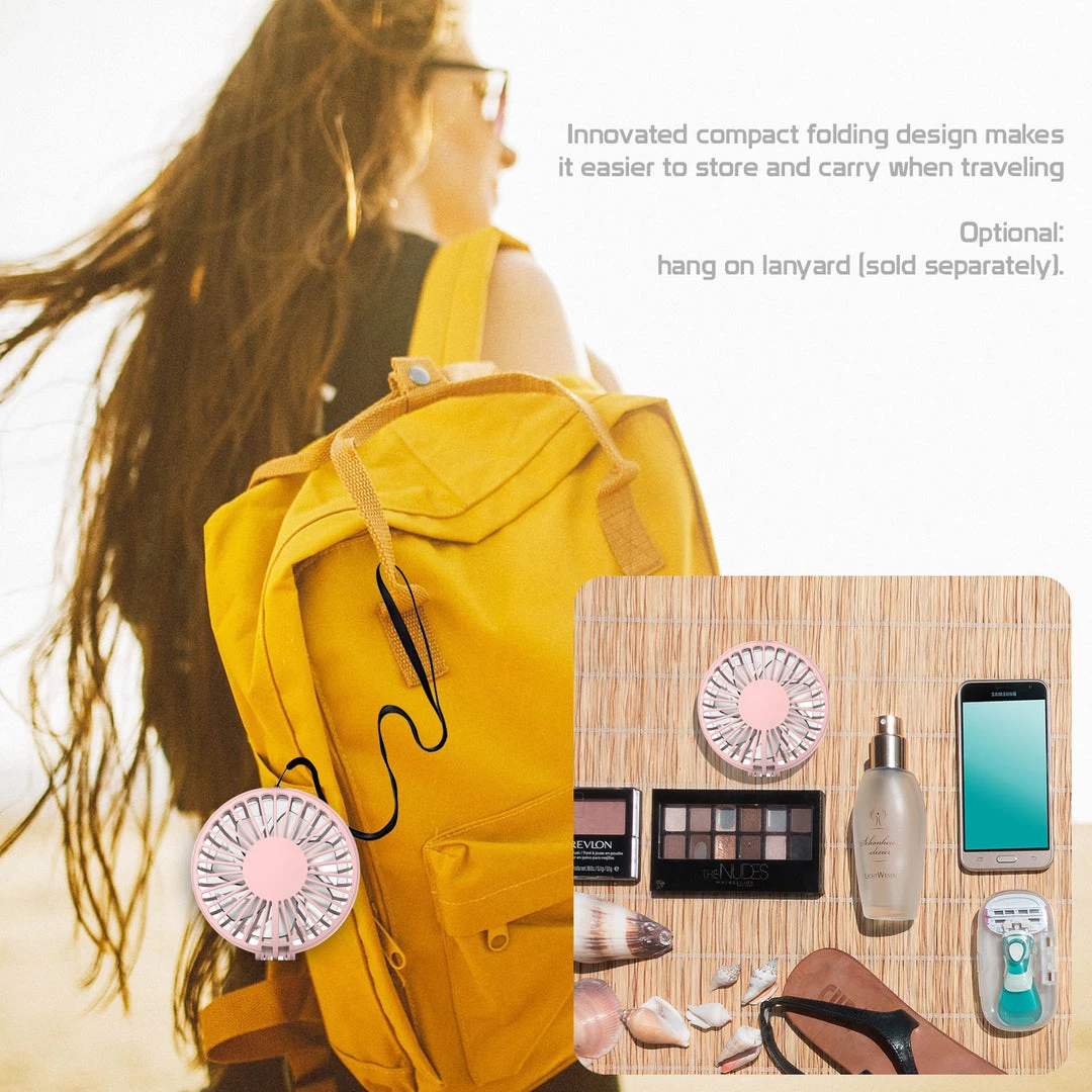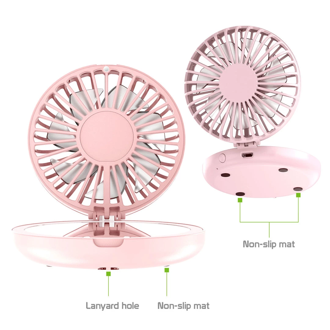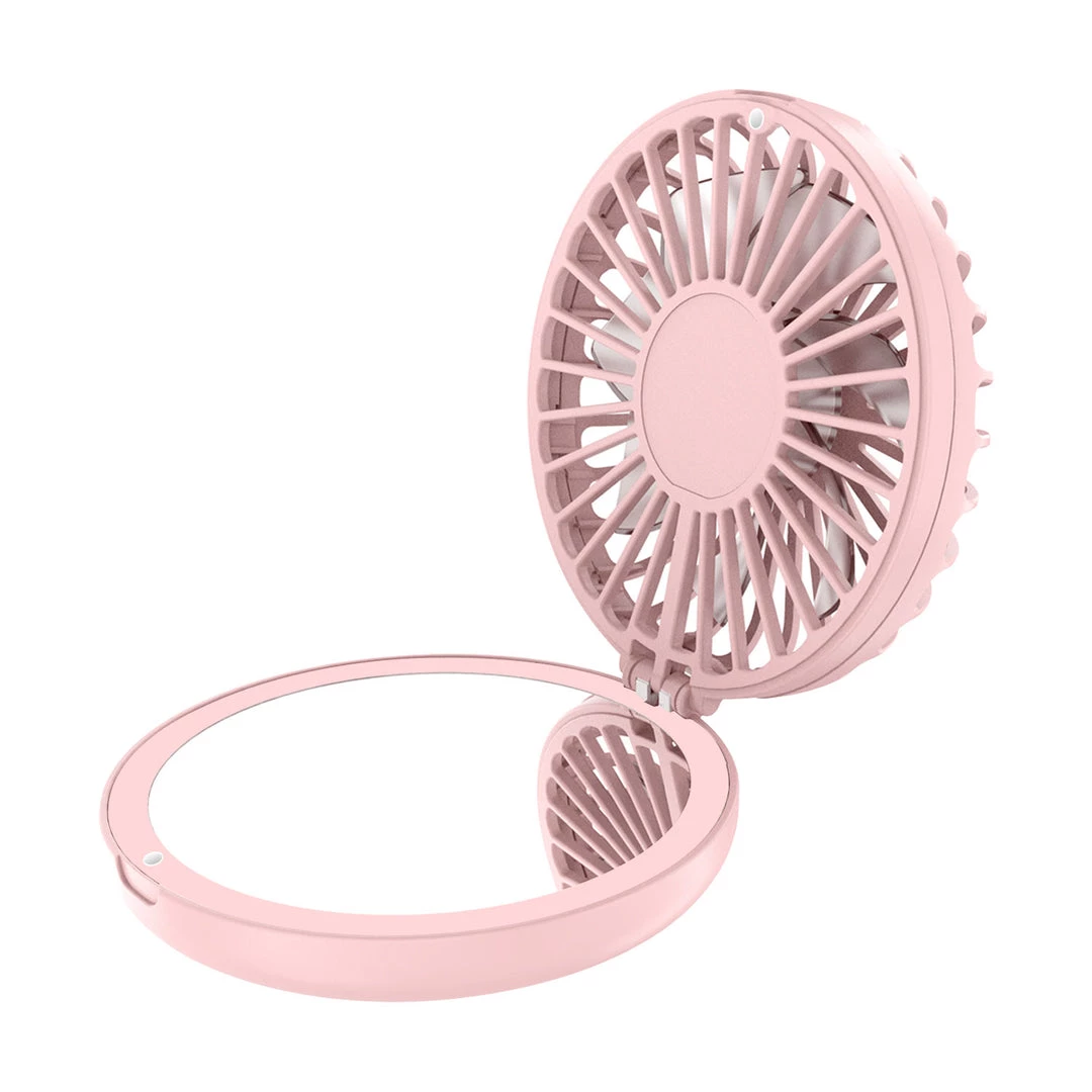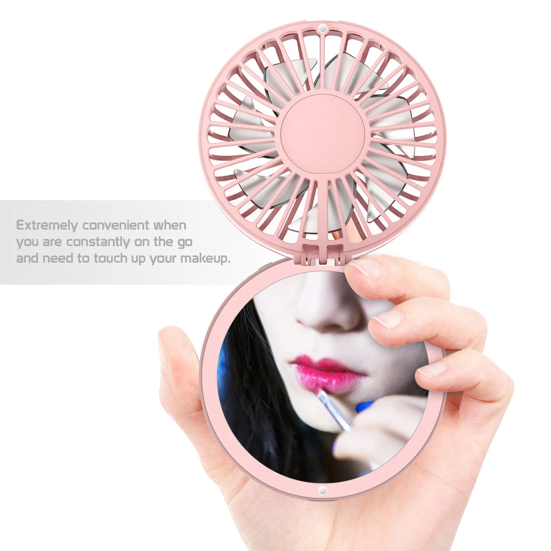 For those who like the convenience of multi-functional items. This is perfect for someone on the go and running a little late. Its innovative compact folding design makes it easy to store and carry when traveling in your purse or pocket. The mini fan is also equipped with a lanyard hole, if used, hang the mini fan from your neck and keep your hands free. Our compact mini fan equipped with a mirror is easy to use, light to carry, and extremely convenient. Small but efficient when operating, the fan makes minimal noise making it easy to use anywhere including in the office, library, or school. When on the go, use the mini fan with a mirror to touch up your makeup. To keep cool as you apply makeup turn on the fan. Simply press the power button once for low speed, twice for medium speed, and three times for high speed.
