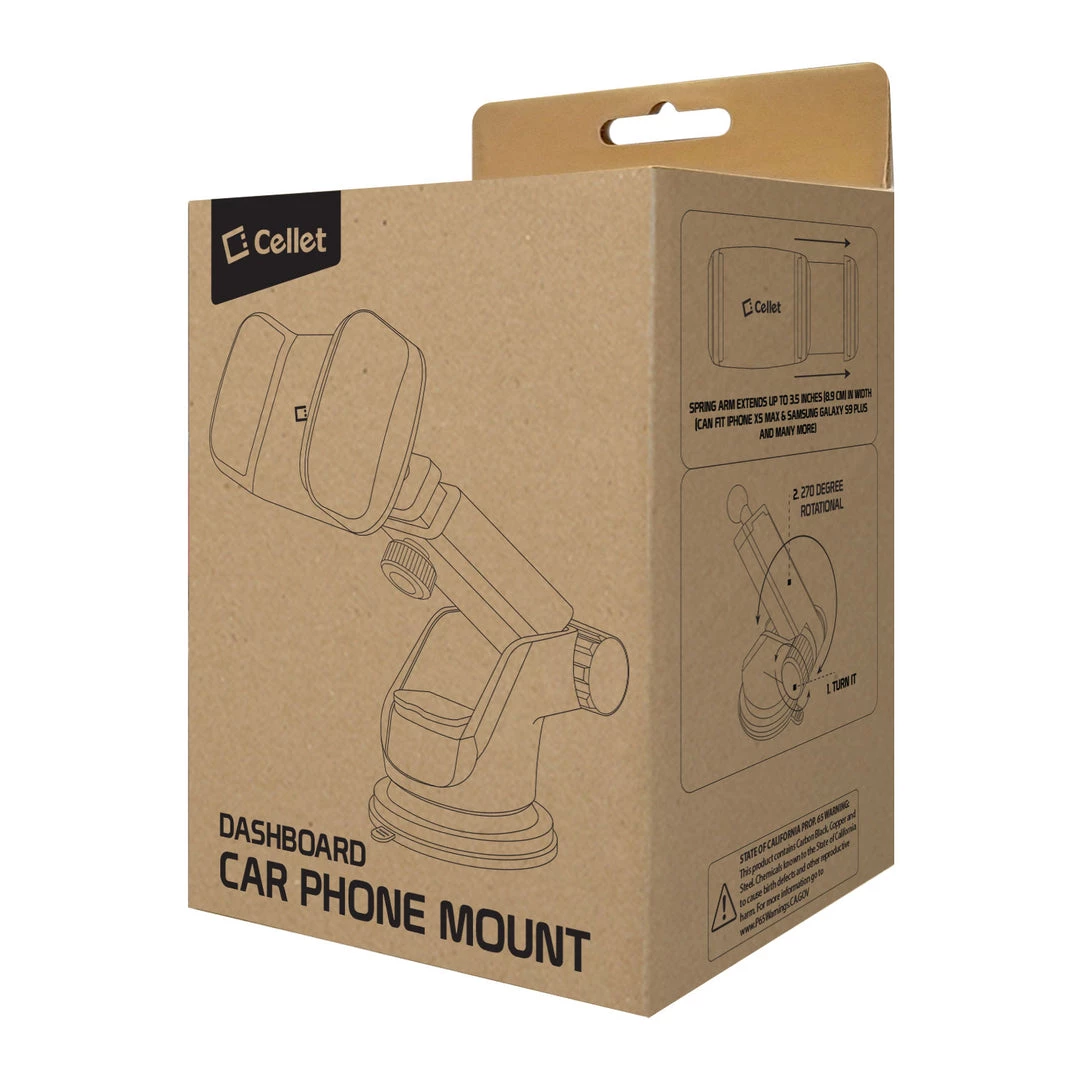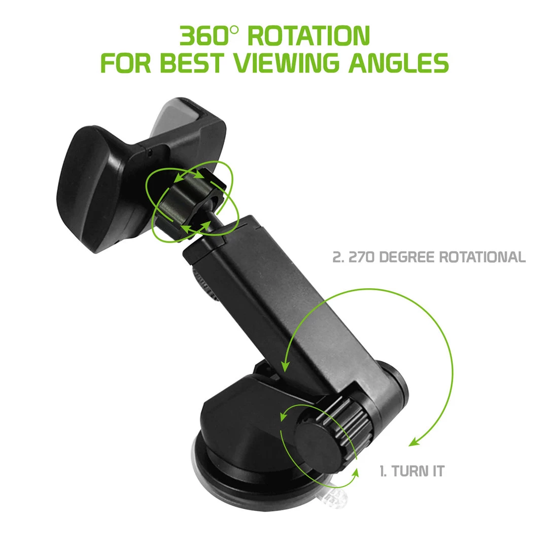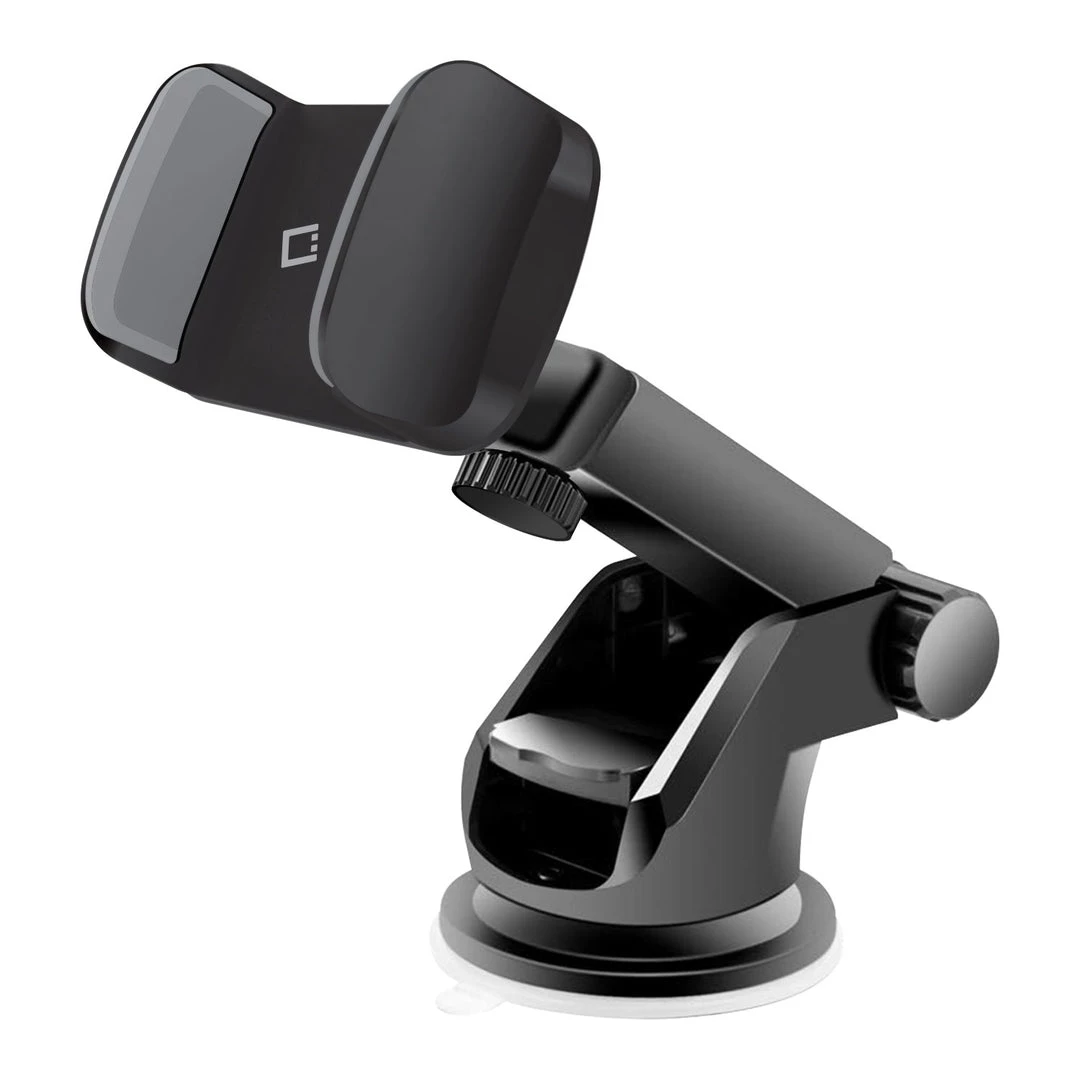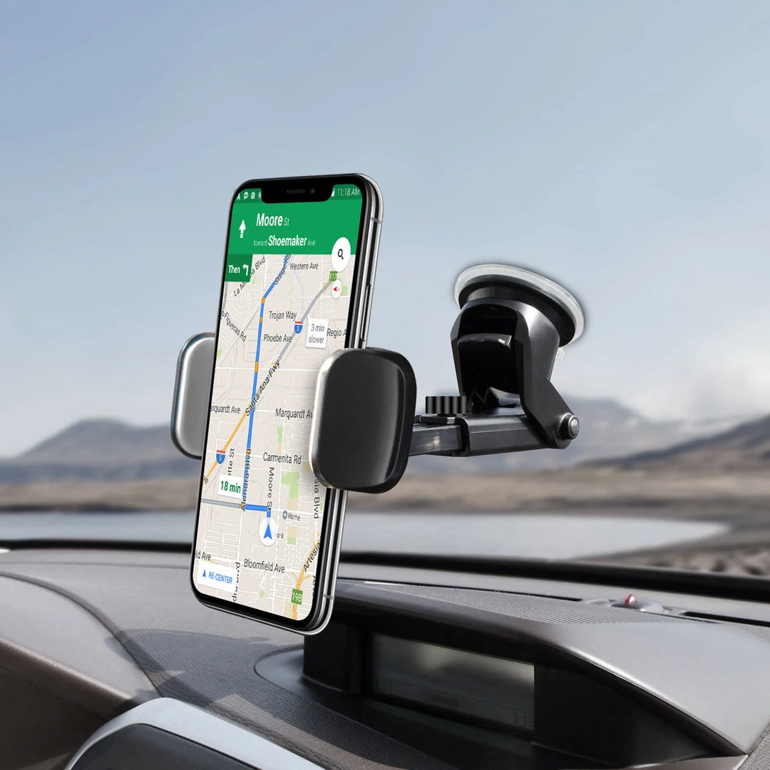 - A suction cup with a lock lever secures the base onto your dashboard. This phone holder will securely hold your phone with confidence and no difficulties as you drive.