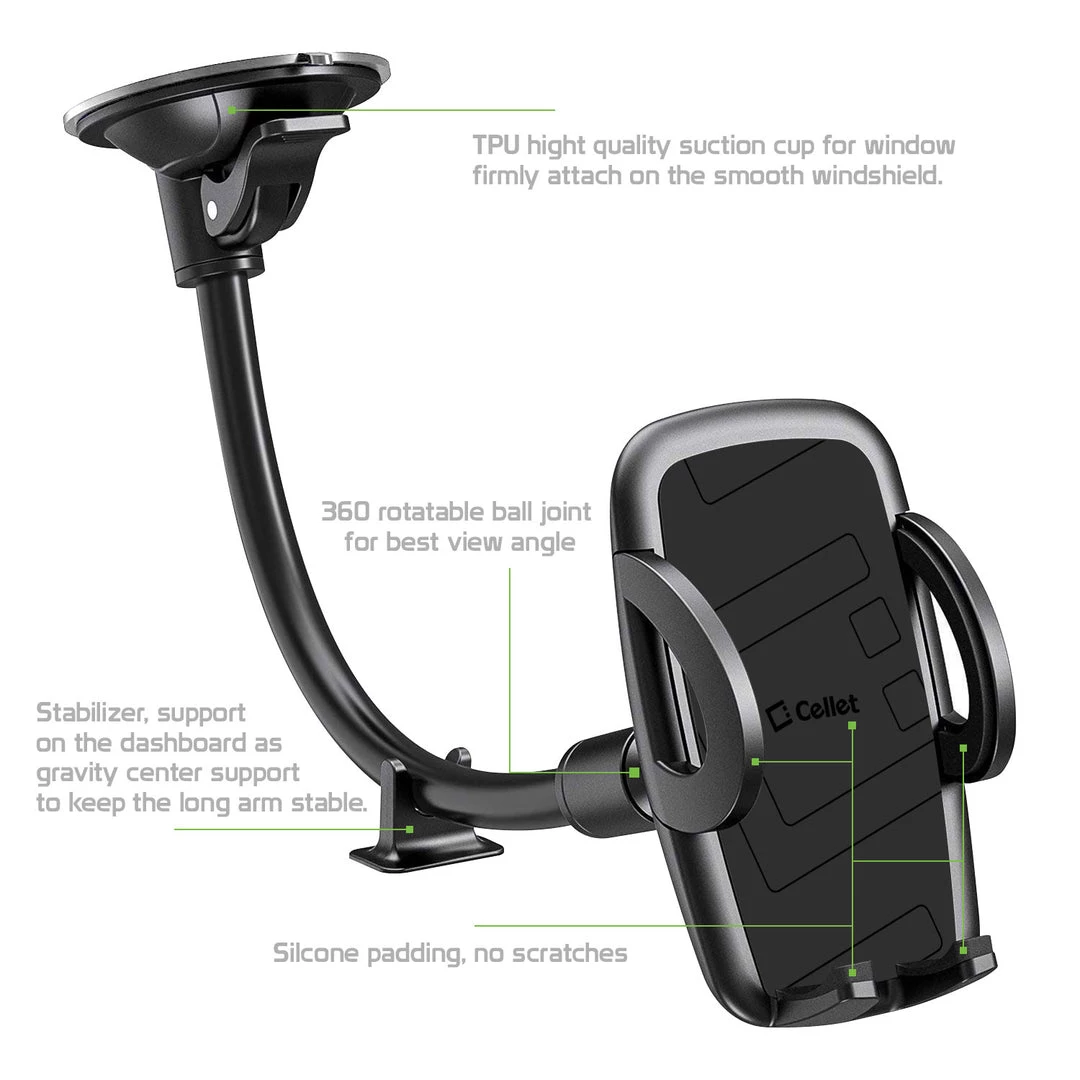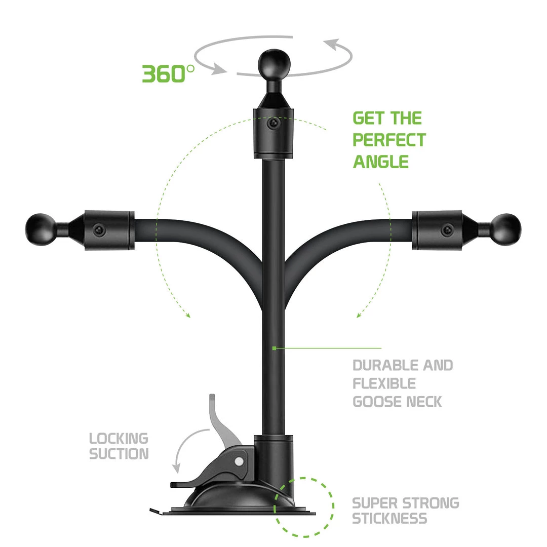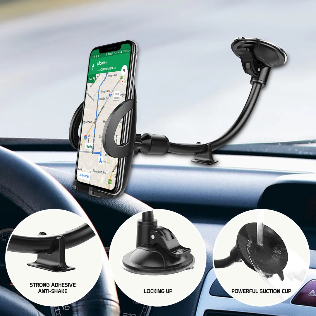 - Adjustable 360 Rotation with Flexible and sturdy gooseneck allows you to easily place device view to just about any desired angle without any hassle, especially while driving on the road with the family, drive safe at all times with hands-free mount.