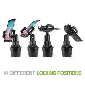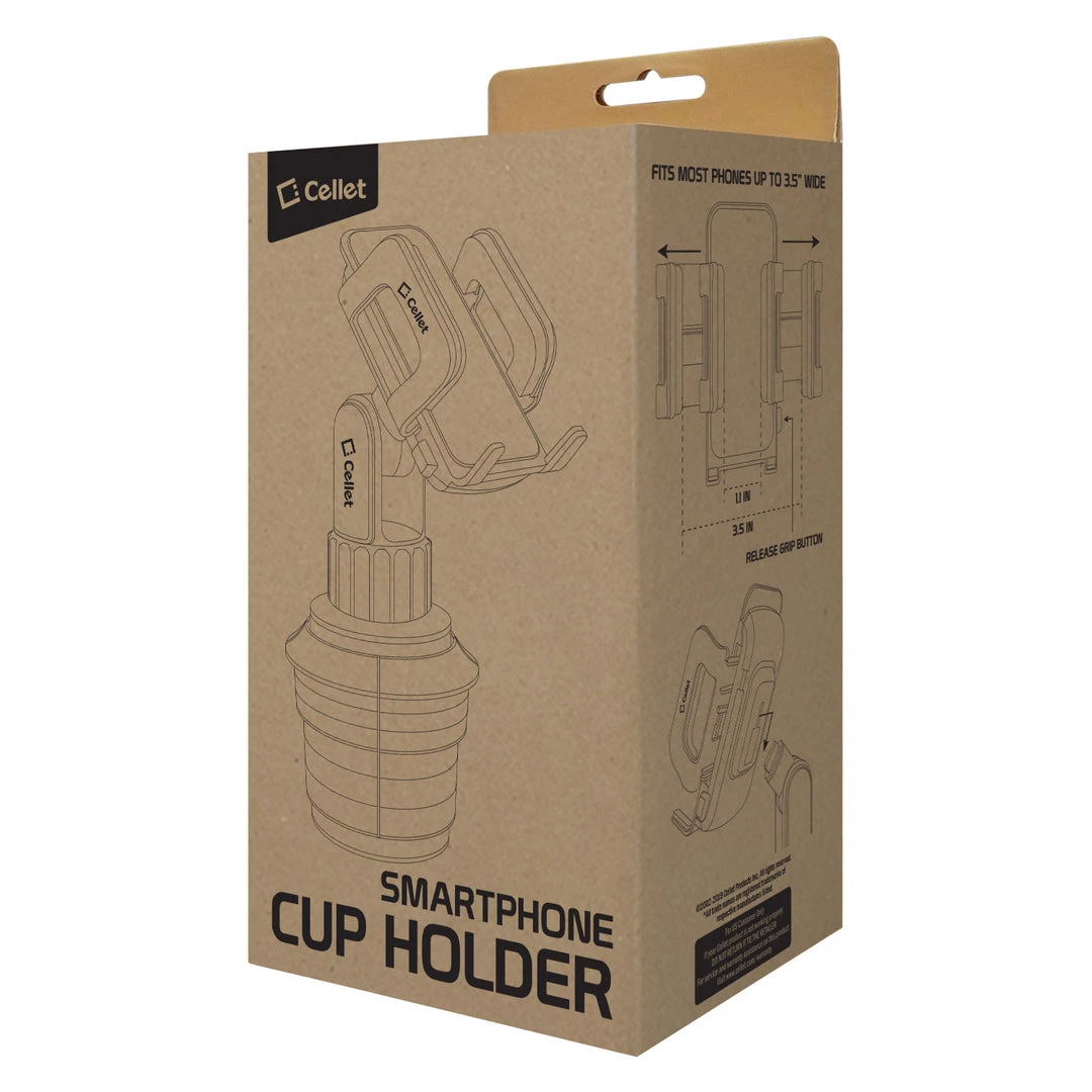 Hold your phone without the concern about your phone moving as your drive with the Cellet Adjustable Automobile Cup Holder. Made with an adjustable heavy base and durable plastic, the phone holder will securely lock in your cup holder. Featuring removable side arms and convenient holder legs, the cradle can firmly accommodate devices up to 3.5 inches wide. The holder has the 360-degree rotational capability and soft holder grips/backing will not scratch your device.
