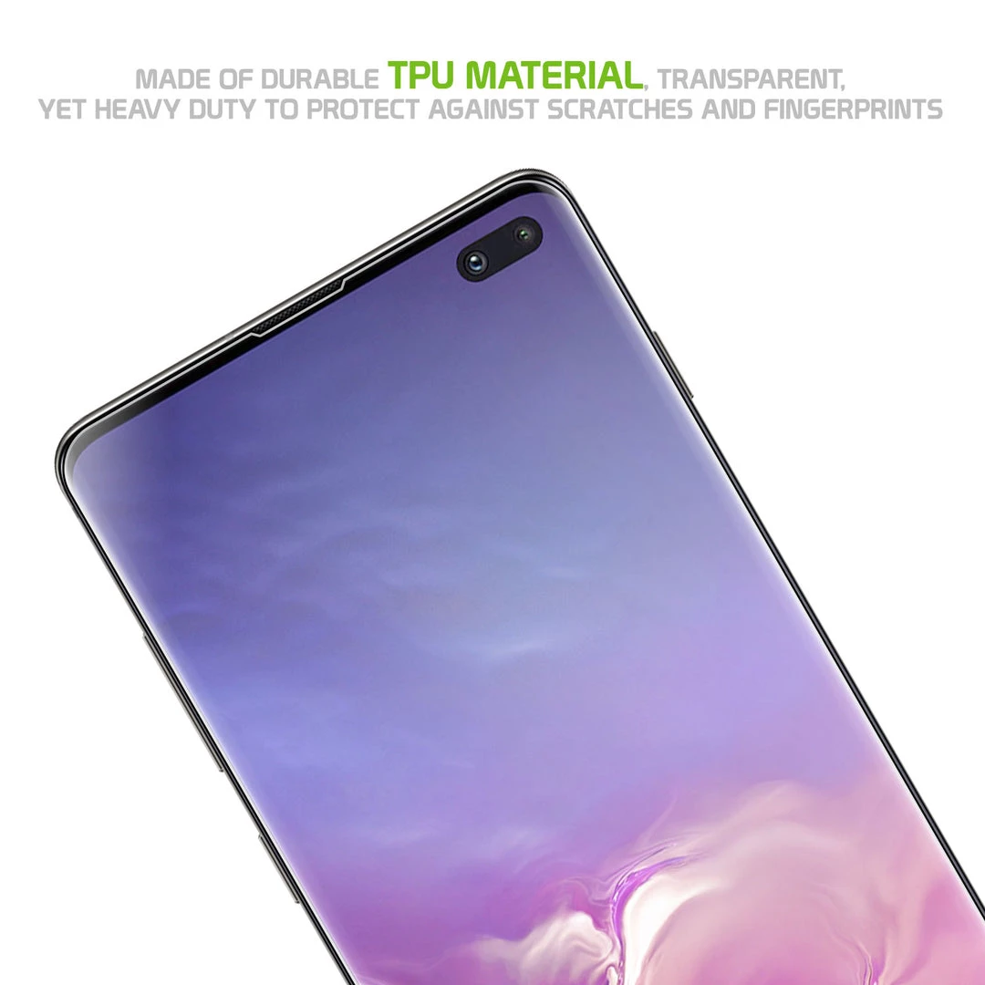 Keep your Samsung Galaxy S10+ screen looking brand new with the Cellet TPU screen protector. Precisely cut for the Samsung Galaxy S10+, the screen provides the ultimate protection for your screen without sacrificing touchscreen capabilities. Made of high-quality TPU film, this invisible screen protector fully protects your curved device from scratches, abrasion, and fingerprints. The film is easily installed and removed with no leftover residue. Along with the screen protector, the package includes an air bubble squeezer and a microfiber cleaning cloth.