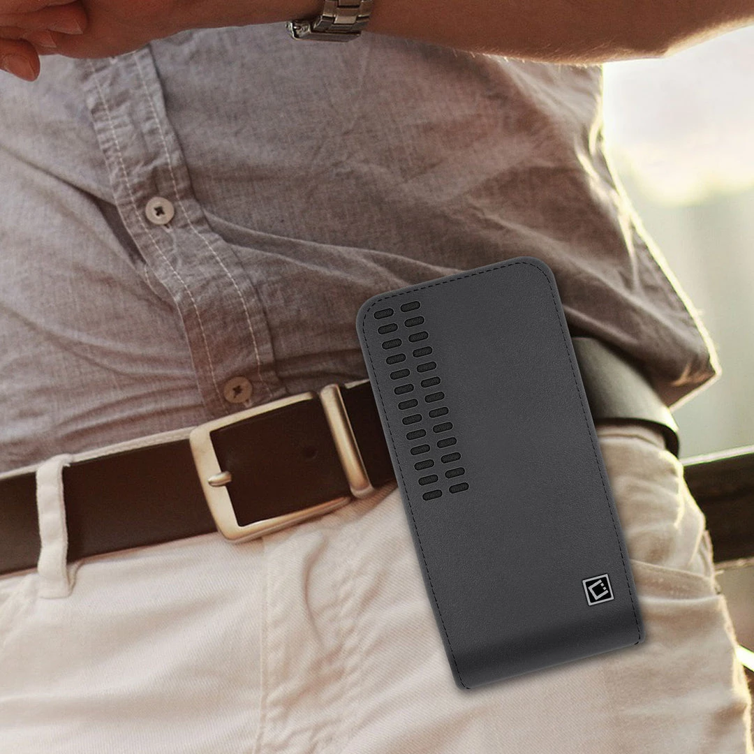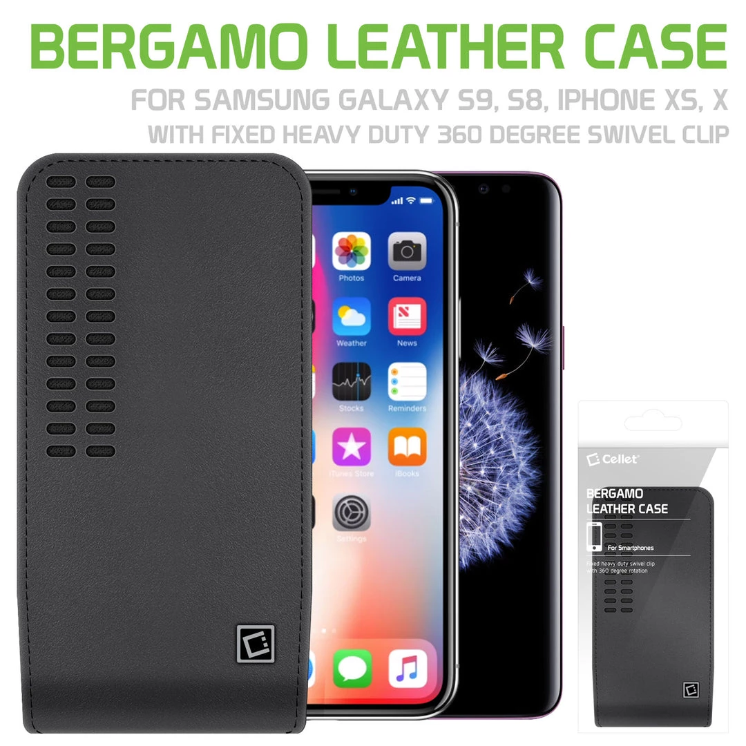 Carry your phone in style with the Cellet Bergamo Leather case. Created with high-grade classic leather, it has an open top for easy access, elastic sides to accommodate your device and a fixed heavy duty swivel clip that has 360-degree rotation capability. This leather case was designed to fit the Samsung S9, S8, S7, S6, S5, and iPhone XS, 8, 7, 6, 6s,7 (all without a case on).Â